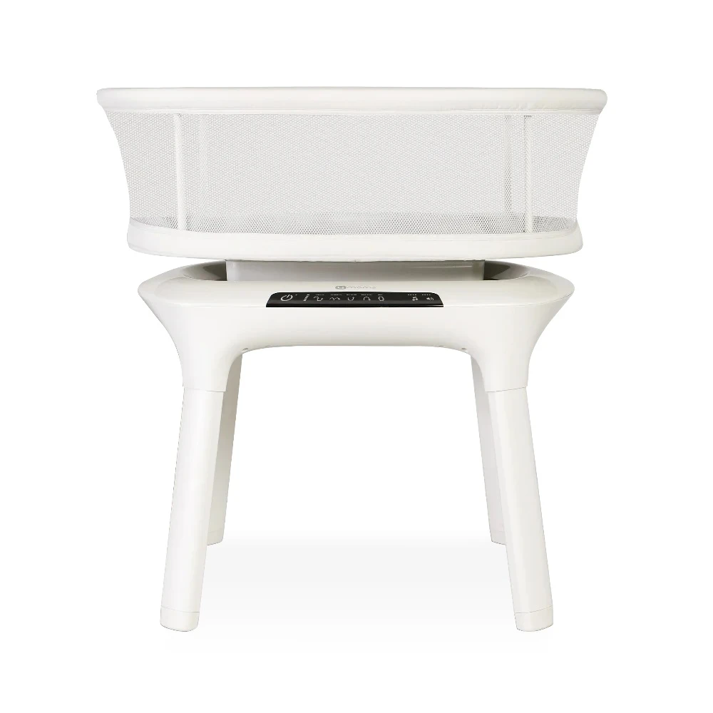 The 4moms® MamaRoo Sleep® Bassinet uses the same proven motions of the 4moms MamaRoo® Multi-Motion Baby Swing™ to help your baby fall asleep and stay asleep longer. Soothe and comfort baby in the MamaRoo Sleep Bassinet with its natural bounce and sway motions that move just like parents do. It features 5 unique rocking motions (car ride, wave, kangaroo, tree swing and rock-a-bye) and 5 speed options to find the perfect combination baby loves. Your baby bassinet can also play one of the 4 white noise options (rain, ocean, fan and shh). Easily control all features via the 4moms app on a compatible smart device. The 4moms app also features a timer that can be used to help establish a bedtime routine and improve sleep.