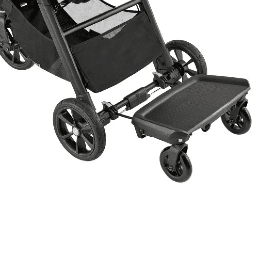 The Baby Jogger CM2/GT2/Elite 2/CTL Glider Board is a great way to let your older child hitch a ride. It attaches easily to the rear axle of your stroller and has a non-slip surface to help your child ride safely. The Glider Board flips up to stay out of the way when not in use, and folds easily even when attached to the stroller.