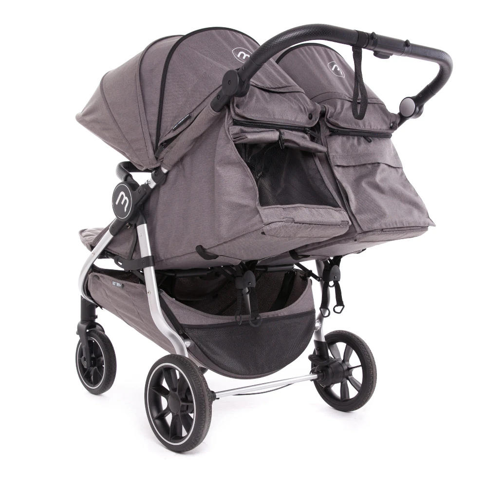 A spacious easy-access basket is included for shopping or essentials and the carry handles and shoulder strap assist with carrying when folded Multiple configurations offer a versatile and stylish solution for twins or children of different ages. The stroller accepts two full size carrycots (sold separately), two infant carrier car seats using the car seat adapters* (sold separately) or a combination of carrycot, car seat and seat unit.
