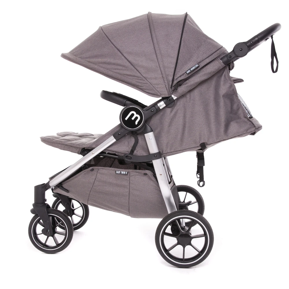 Baby Monsters Easy Twin 4.0 Stroller Black/Texas perfectly practical side by side travel system solution. Weighing in at only 11.5kg, it’s the lightest side by side stroller on the market with full twin travel system compatibility.The 67cm slim-fit chassis pushes easily through most doorways and narrow shop aisles. With a tight turning circle and folding handle to reduce the length of the stroller when required, it also manoeuvres well in tight spaces such as lifts and passageways.