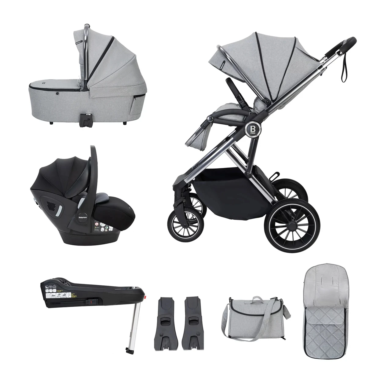 Babymore Chia Travel System Pecan with Base – Pearl Grey