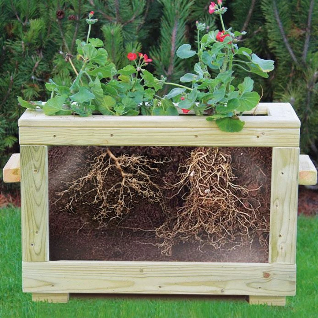 - Includes: a clear Perspex viewing window for children to observe root systems and mini-beast guests.
