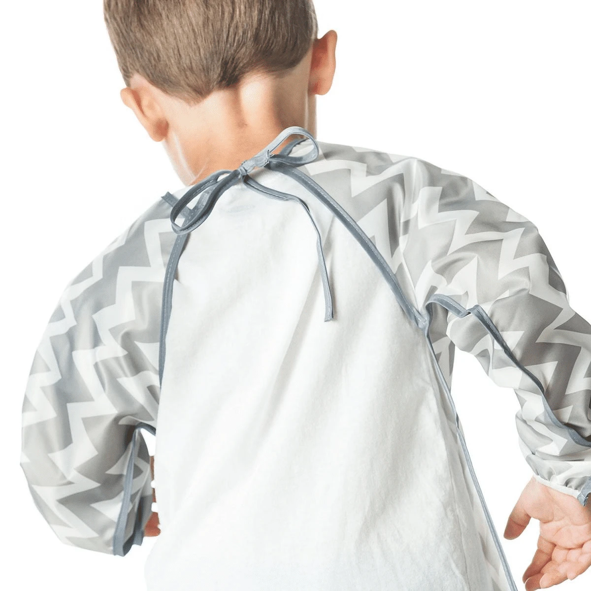 Bumkins Grey Chevron Sleeved Bib is beautiful and stylish. Designed to make mealtimes that little bit easier. Made from the classic lightweight, easy-wipe, waterproof and stain resistant fabric, and completely machine washable. These bibs are a total outfit saviour and even have a handy tie closure to avoid any little ones escaping from their bib. The singly ply fabric means you donβt have to worry about the bib developing dirt in places you canβt wash!