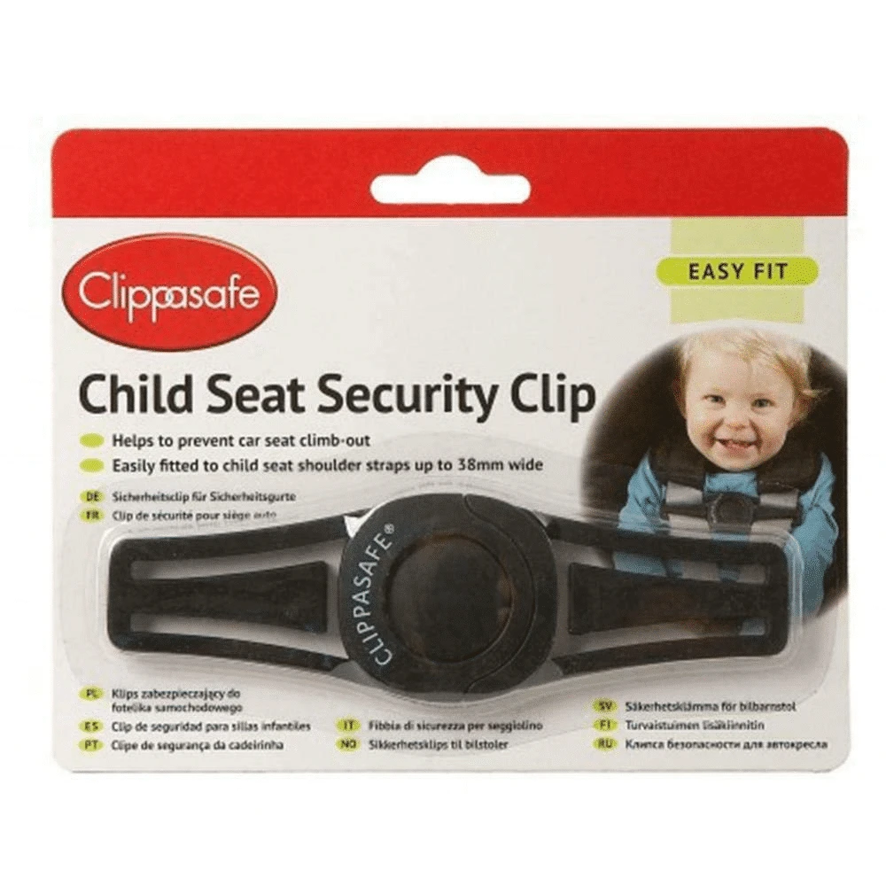 Seat Security Clip: Provides extra security for children’s car seat shoulder straps to help prevent them climbing out. Features a single press to release value for speedy removal in the event of an emergency. Easily fitted to child seat shoulder straps up to 38mm wide.