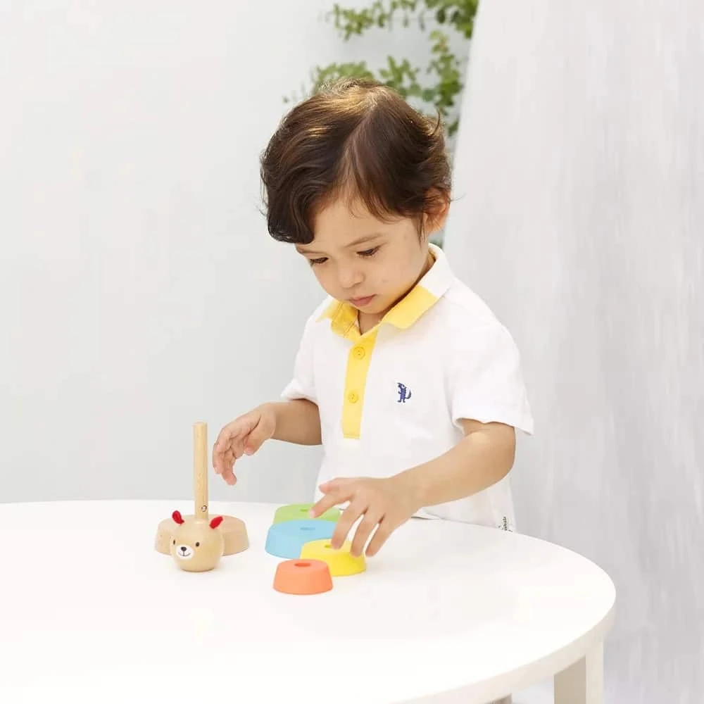 A beautiful traditional wooden Classic World Bear Tower. An adorable bear tower designed with four colourful and striking rings to stimulate little minds. The stacking toy is made from durable beechwood and MDF, built to withstand the heaviest hands. Little ones will have no idea they are learning whilst playing.