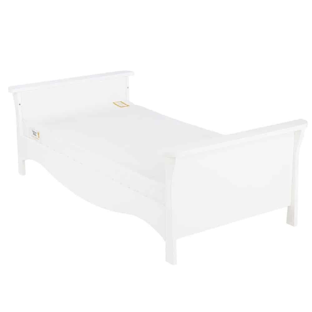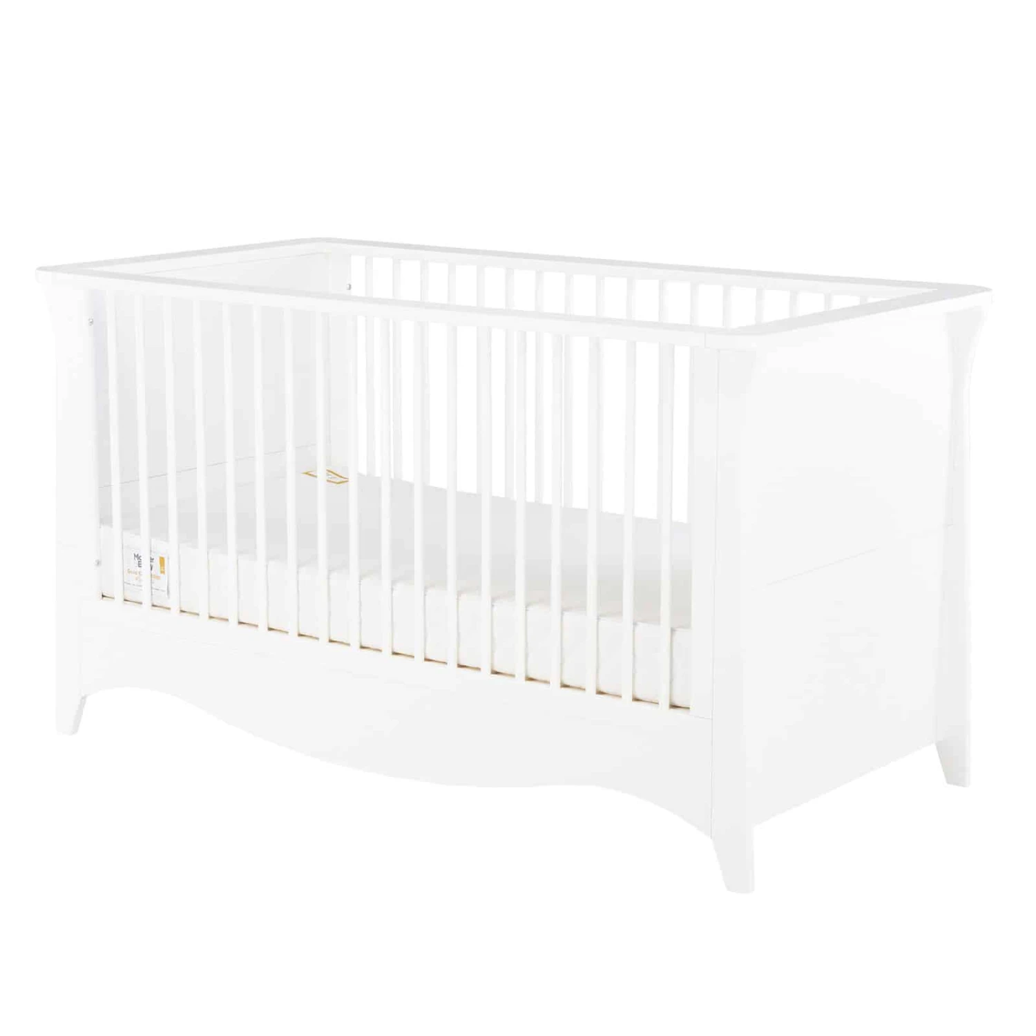 Classic shape with a modern contemporary end of CuddleCo Clara Cot Bed will be a great choice to any nursery room. This stylish cot bed is suitable from birth and can be converted into a modern toddler bed, which lasts up to approx. 5 years old. It features fixed rails with elegant cylindrical bars and tasteful finish on the top end. The functional base can be adjusted into 3 different positions for comfortable usage and protection from escape attempts. This furniture is carefully designed in Great Britain and made of solid pine and manufactured wood.