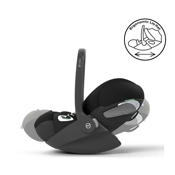 Cybex Cloud T i-Size Car Seat – Sepia Black features a comfortable in-car recline and a lie-flat position when used as part of a travel system. An ADAC Test Winner (Oct 2023, award shared with another product). Only compatible with Base T or Base Z2.