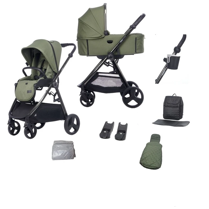 - Sustainable – 92 recycled PET bottles are used to make each stroller, and 73 per carrycot. Colour choice of black, green or grey paired with a gunmetal anodised frame