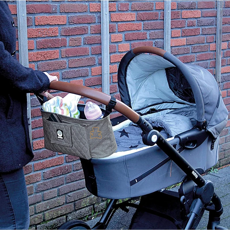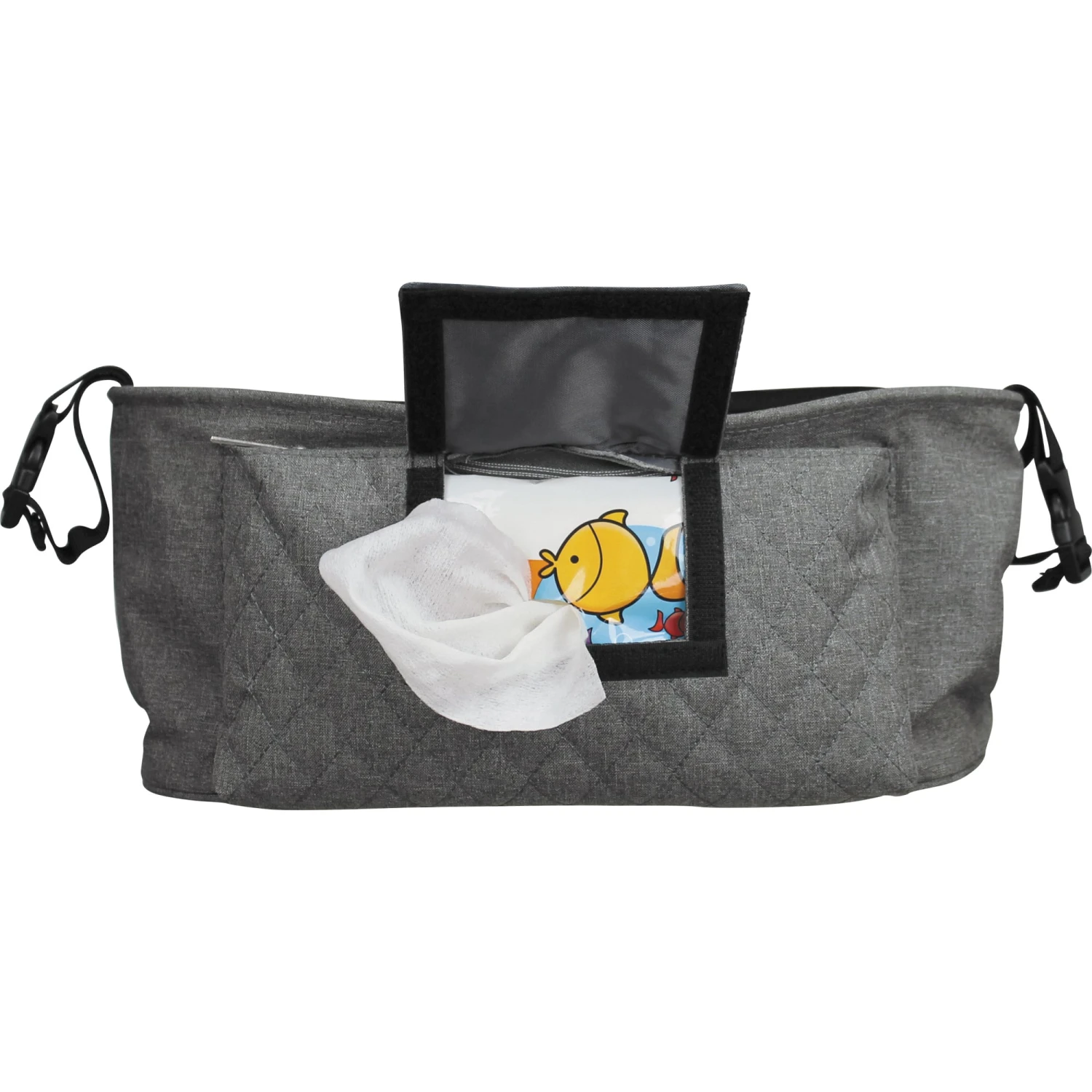 This stylish, practical and contemporary Dooky Buggy Organiser is a must have for every mum and dad! The grey mélange fabric is extra highlighted by the silver coloured zipper. Very handy to keep the most common things at hand when you are on your way. For example: drinking bottle, food, toy, phone, pacifier etc. Light weight, water-resistant, easy to clean with a damp cloth. The 2 adjustable bands with clips can be easily clicked around the push bar of your stroller/buggy.