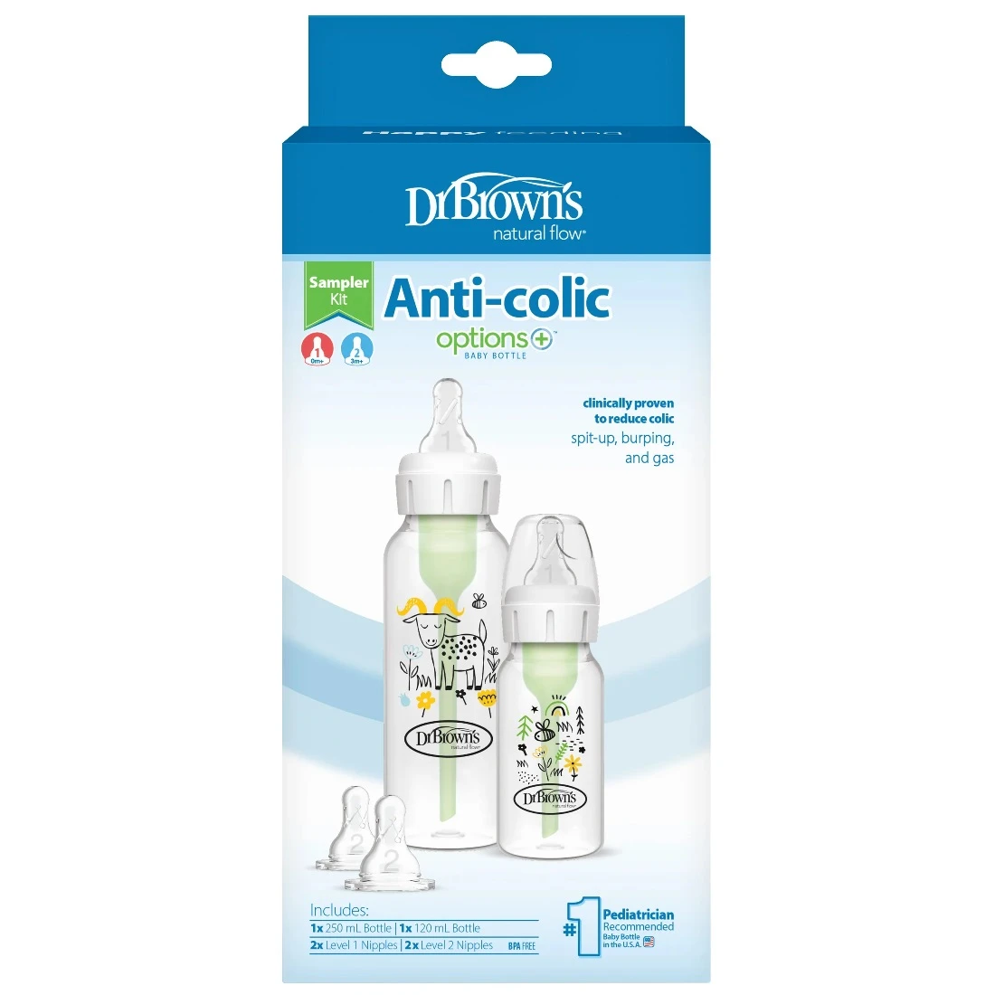 Dr Brown’s Farm Narrow Neck Sampler Kit is clinically proven to reduce windy colic due to Dr Brown’s unique 100% vacuum-free vent system. Dr Brown’s Options+ bottles offer an easy and comfortable way to feed your little-one, adapting to their needs as they grow.