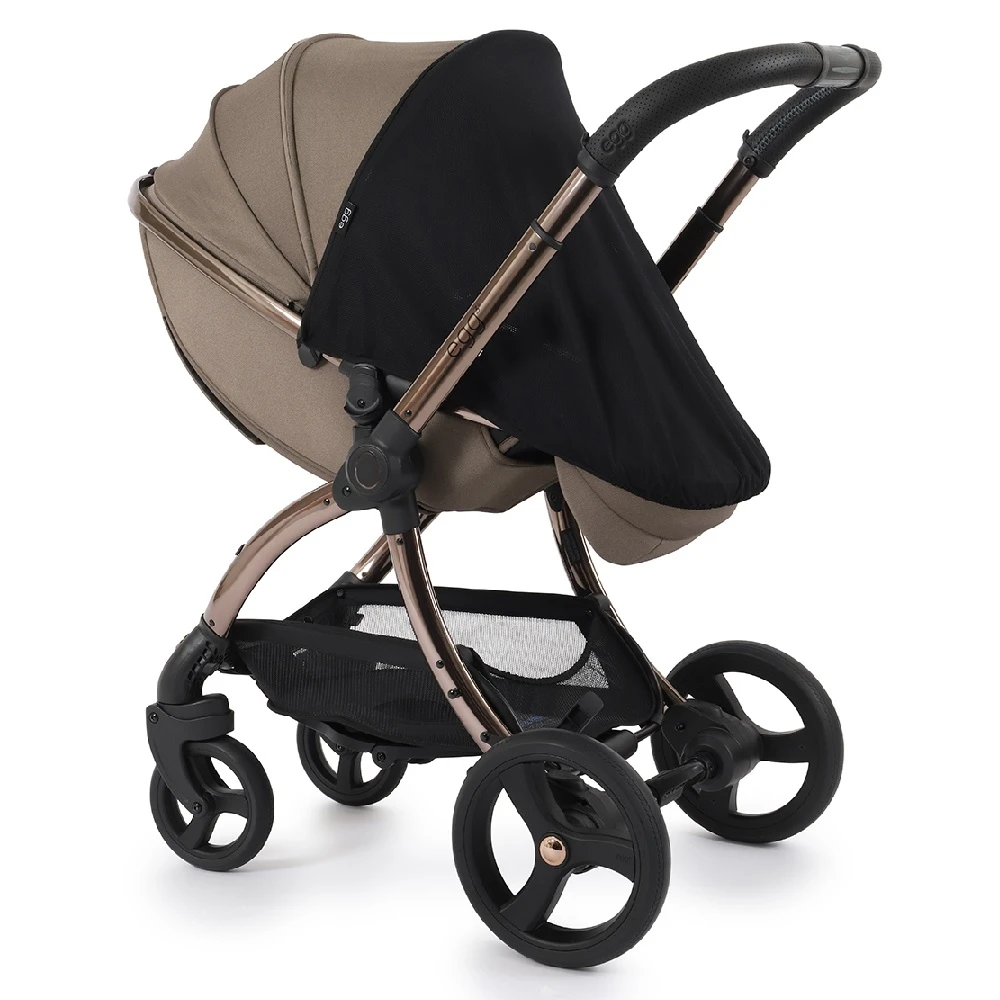 The Egg 2/3 Sunshade will protect your baby from harmful UVA & UVB rays (50+). The sunshade also fits the original egg. Simply fix to the egg using the elasticated loops on either side, hooking around the hood and calf-rest.