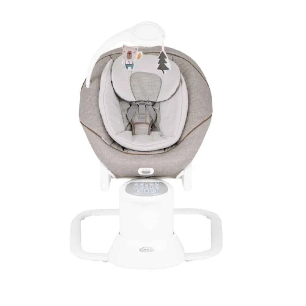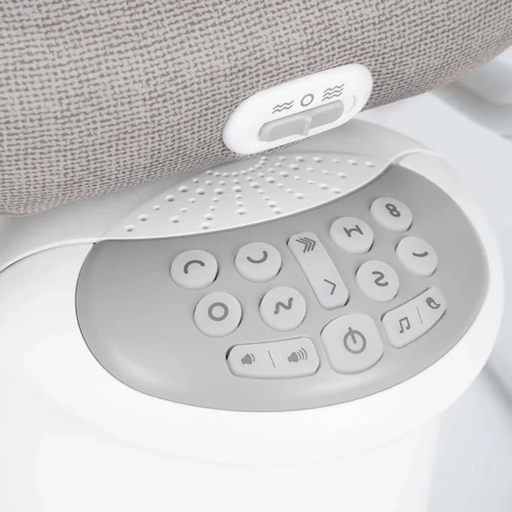 The Graco Move With Me Soother swings side to side, featuring 5-speed soothing motion and gentle vibrations to calm your little one in minutes. The multi-position recline seat creates the optimum environment for bottle feeding or nap time. This rocker has an audio system with 10 built-in melodies, 5 nature sounds. In addition, it supports phone or MP3 connection to play your baby’s favourite songs. The infant insert with 3-point harness keeps your baby cosy and secure at all times.