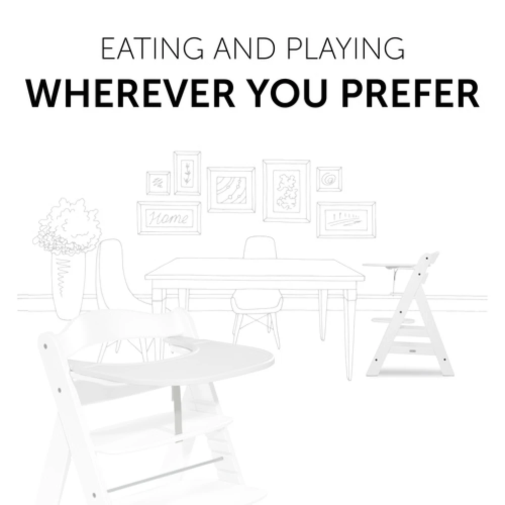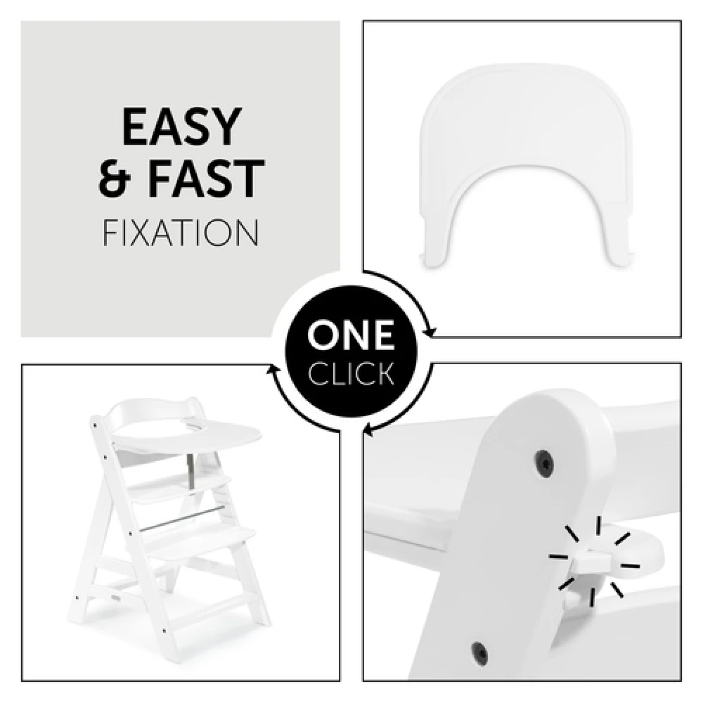The Hauck Alpha Click Tray White is one of the many accessories available for the Alpha+ wooden highchair. Thanks to the click system, the tray easily slides on to the grow-along chair with one hand and safely clicks into place – no tools needed – allowing maximum flexibility during mealtimes.
