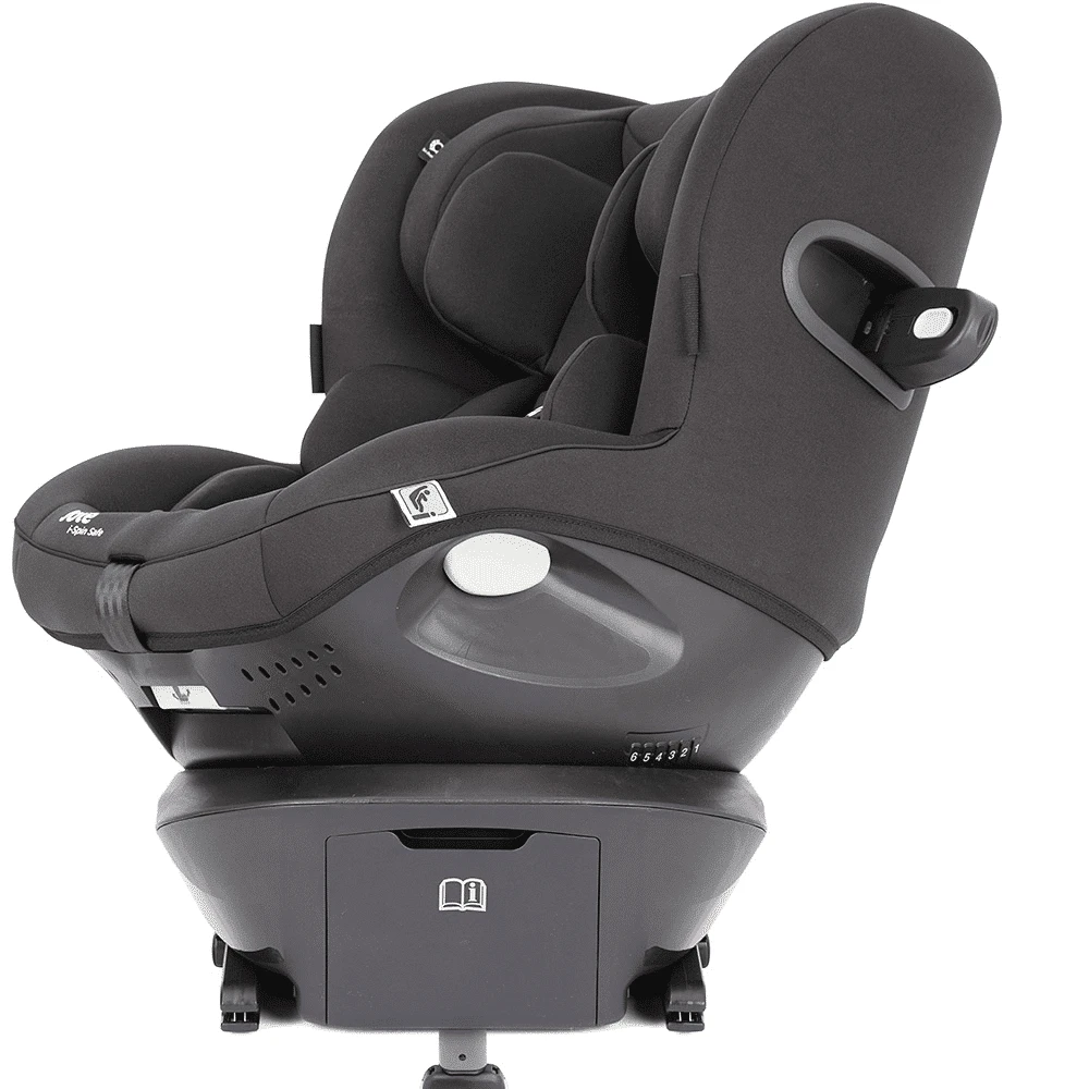 Meet the Joie i-Spin SAFE Coal a spinning seat that’s both i-Size and Swedish Plus Test certified and rides rearward only, all the way up to 18.5 kg and approx 4 years. With both i-Size and Plus Test safety certifications under its belt, the i-Spin Safe buckles up to provide protection that’s been tested and proven from every angle. Positioned where you naturally reach, the one-hand Simple Swivel creates a silky smooth 90 spin that turns your kiddo towards you during buckle-up and back again to a safely rearward ride. Auto-engage Guard Surround Safety side impact protection panels lock outward when the harness is tightened and absorb force during a crash, for safety on all sides.