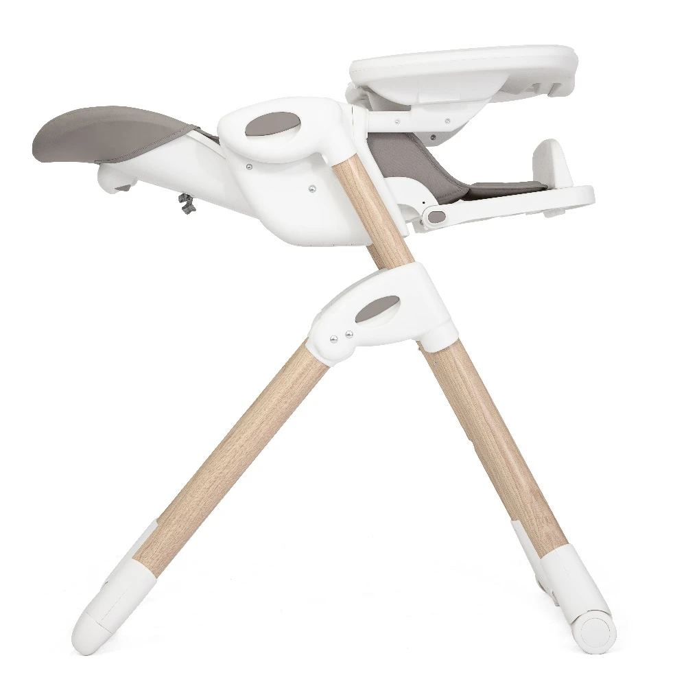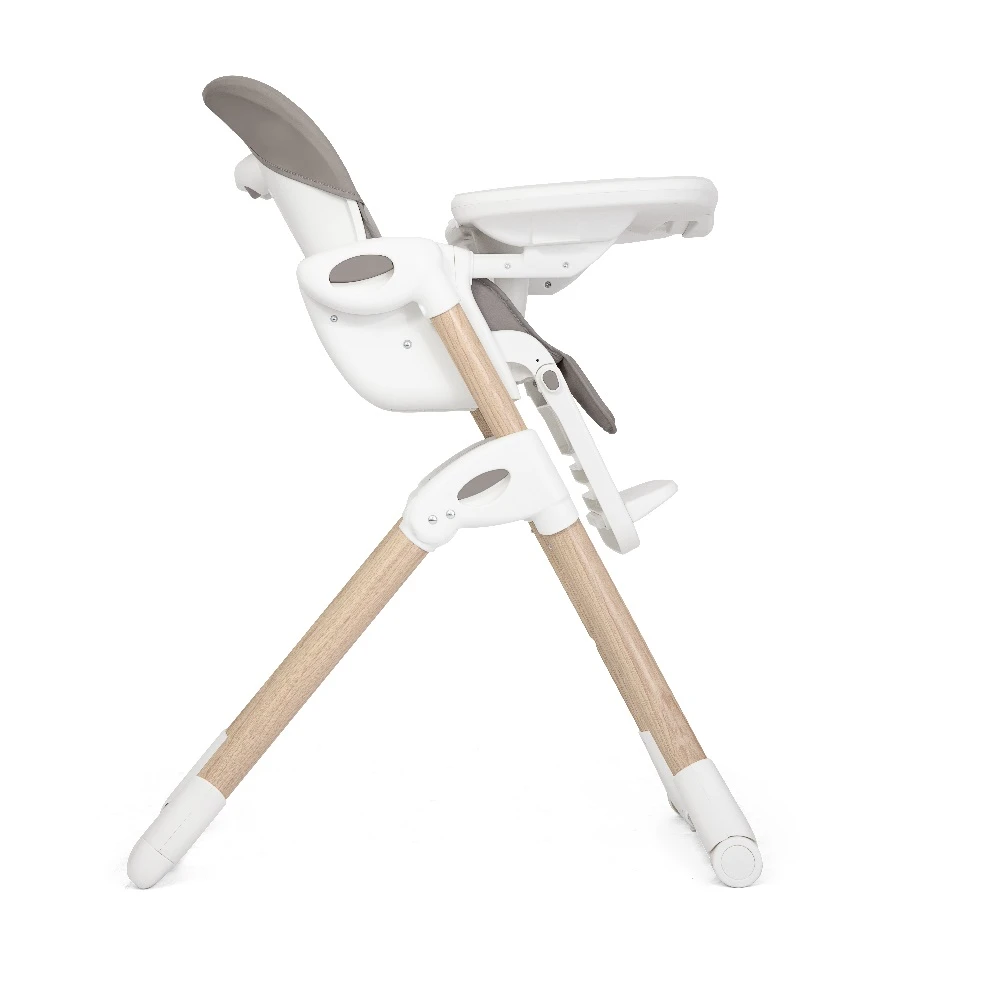 Height adjustable low-profile frame pulls right up to your table to double as a booster seat as your little one grows.