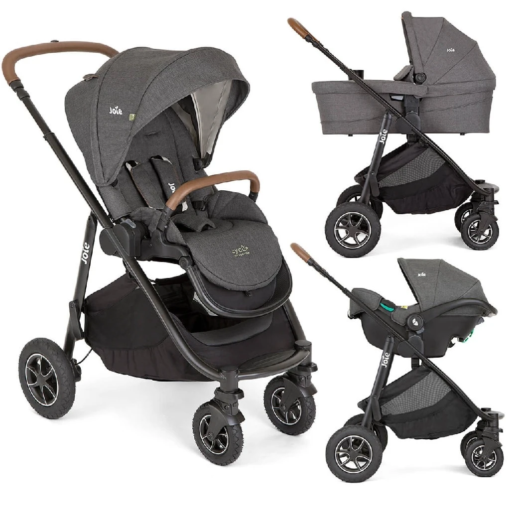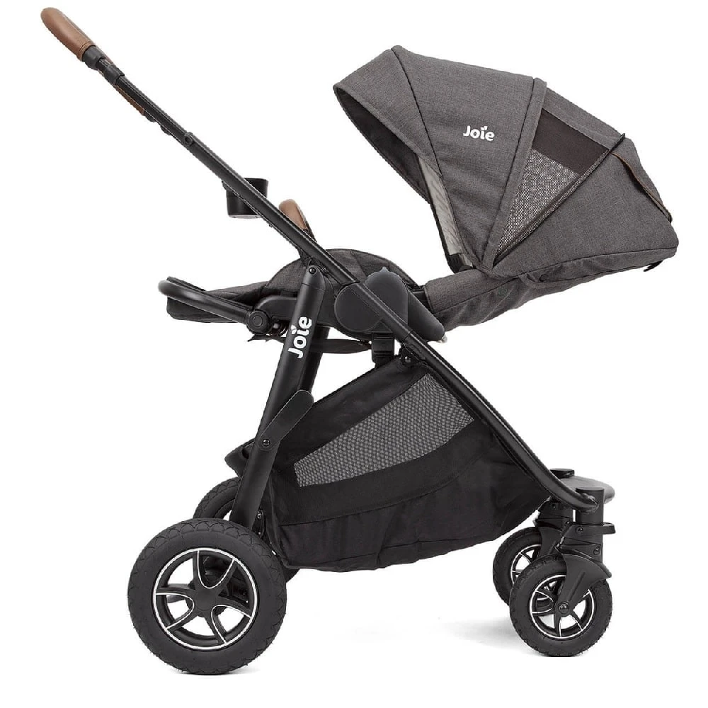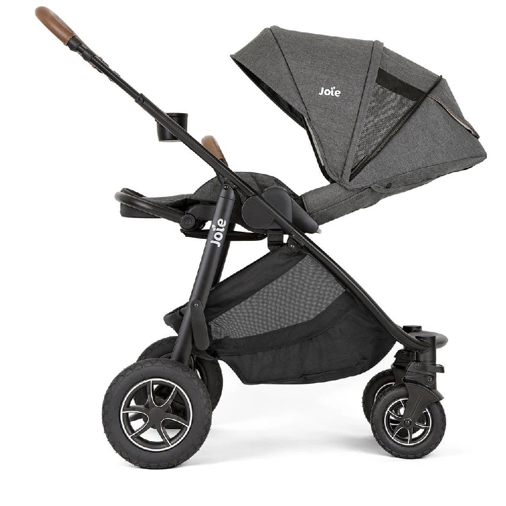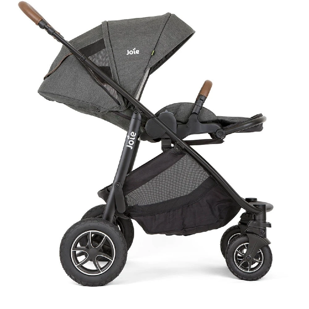 The Joie Versatrax Travel System – Shell Grey set includes Joie Versatrax with Ramble XL carrycot and Joie i-Snug™ 2 car seat.