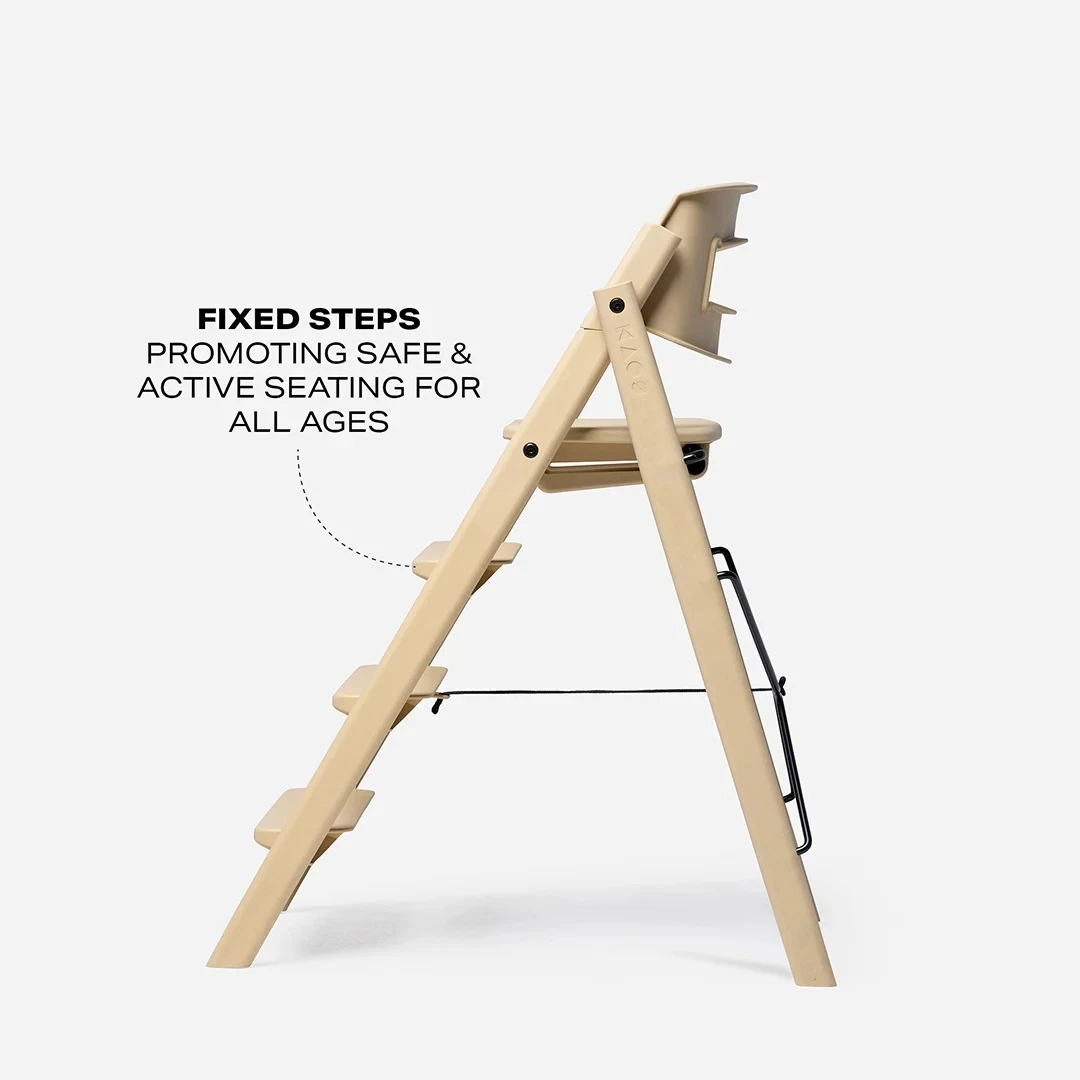 The Kaos Klapp High Chair Recycled Plastic – Desert Sand is a modern design classic suitable for the entire childhood. Its design draws inspiration from a staircase, allowing children of various sizes to sit comfortably and naturally. The highchair comes pre-assembled and folded flat, making it easy to set up—simply pop it open, and it’s ready for mealtime.