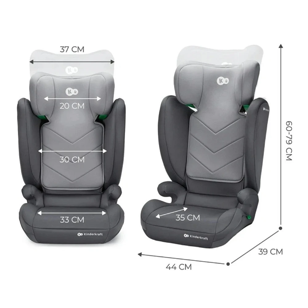 Kinderkraft Car Seat I-SPARK i-Size 100-150cm GREY is dedicated to children 100-150 cm in height (from approximately 3.5 to 12 years old) and complies with the latest R129 i-Size safety standard. It can be used without the backrest as a booster cushion for older children in the range of 140-150 cm in height.