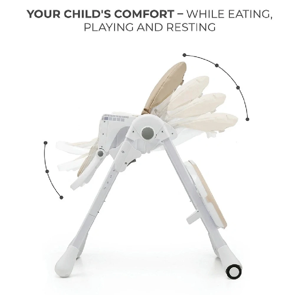 Kinderkraft High chair 2in1 TUMMIE Beige is suitable from birth. This is possible thanks to the bouncer function – simply adjust the backrest and footrest, and place the internal insert with headrest so that your newborn can use it.