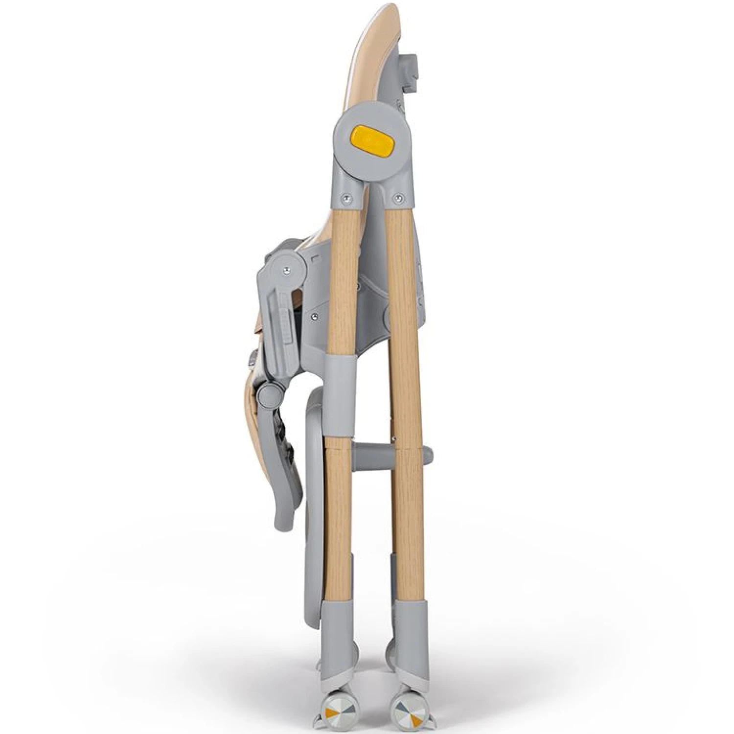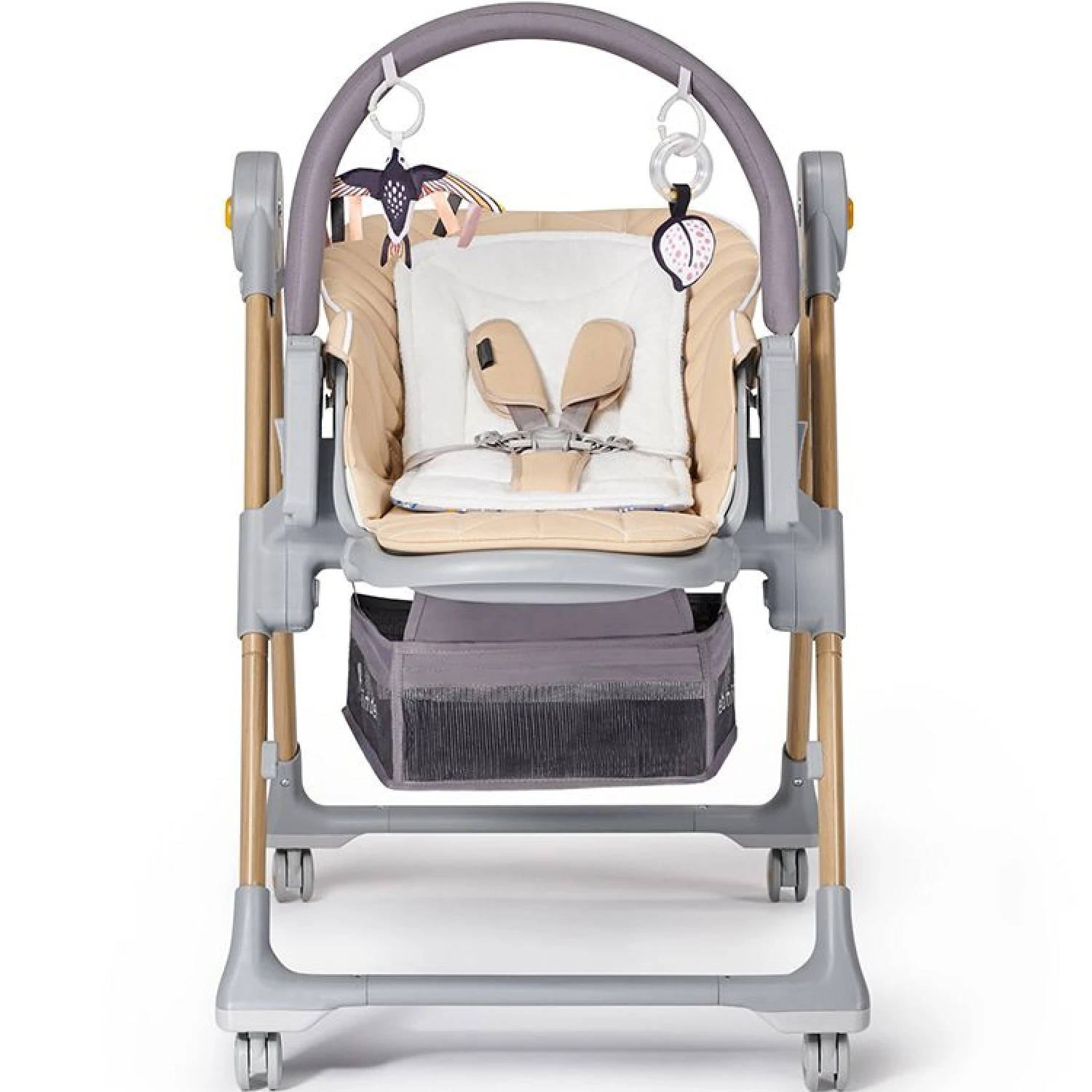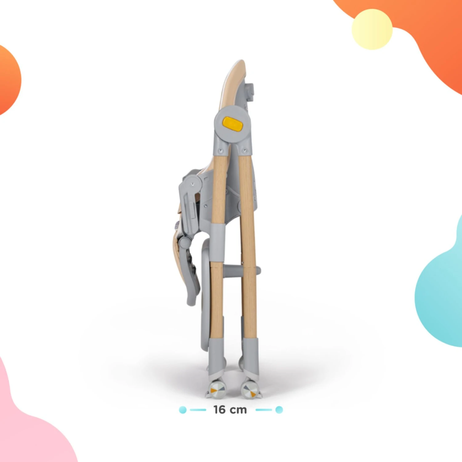 The tray has three different distances from the seat, can be remove if needed. A sturdy five-point safety harness. It’s adjustable, durable and can be clipped in at two different heights. Reversible insert means you can completely transform the look of the high chair in just a few moments.