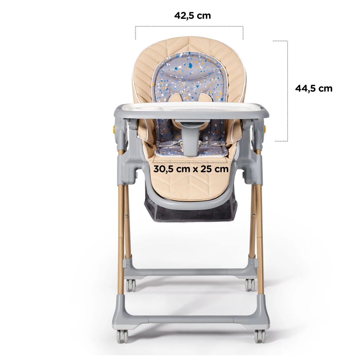 The convenient wheels make it easy to move the high chair around, and the modern terrazzo design makes LASTREE look great in many interiors.