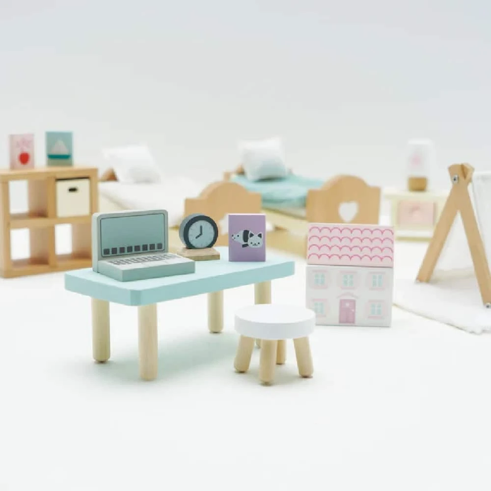 This delightful 24 piece Le Toy Van Childrens Bedroom Furniture set is perfectly sized to fit our extensive range of stunning wooden dolls houses. Crafted from FSC®-certified wood, with eye-catching modern design, it’s sure to add a contemporary look to their miniature play universe.