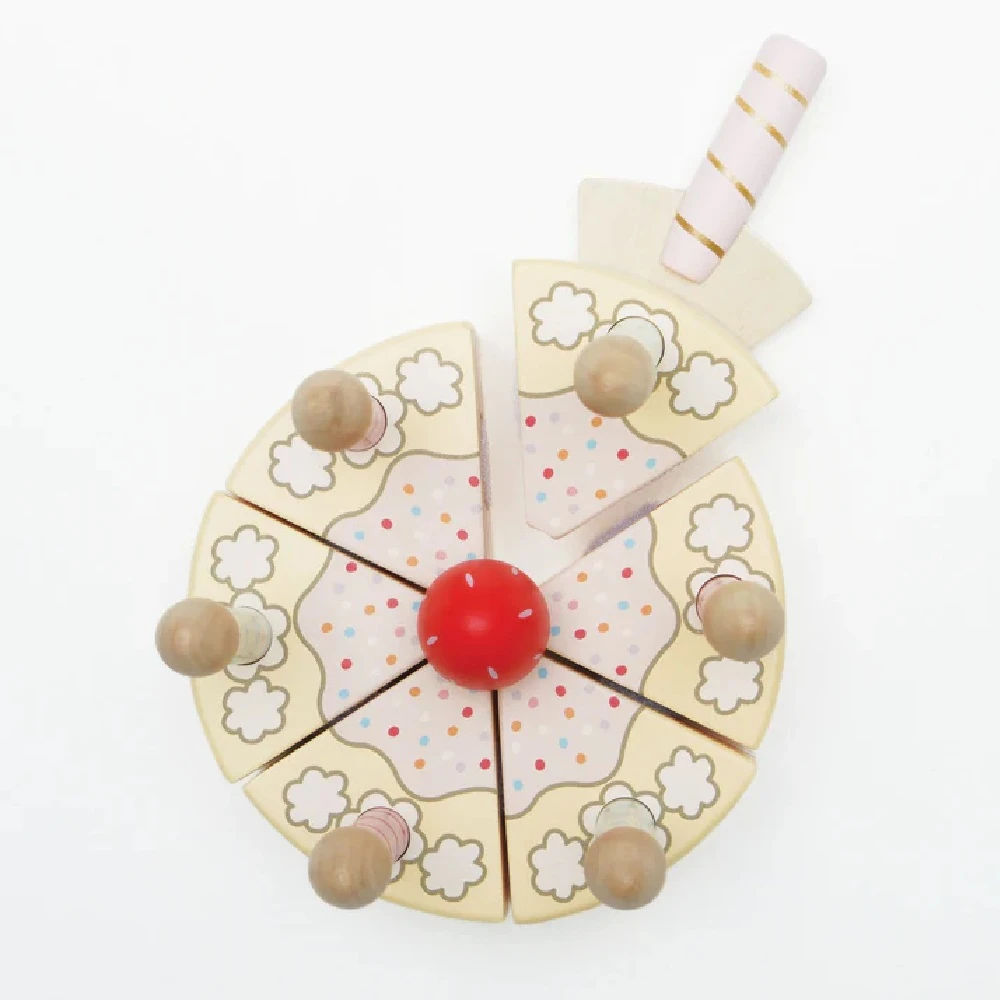 Let the celebrations begin. Dish up this delicious looking Le Toy Van Sliceable Birthday Cake and Candles. Decorated with lashings of cream and topped off with a juicy wooden strawberry.