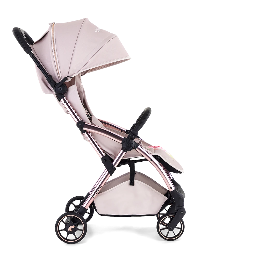 The Leclercbaby by Monnalisa collection is a fashion statement that combines the best comfort, functionality, and eye-catching design. Stunning fabrics, glossy champaign, brown, and rose gold frames, bold design, fitting your lifestyle. The Leclercbaby by Monnalisa collection comes with a stunning combination of floral prints, high-end materials, and an extremely easy folding system. The Leclercbaby by Monnalisa collection includes matching accessories that combine beauty and convenience and make parenting easier.