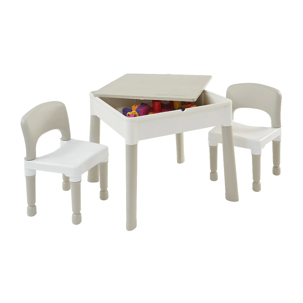 Liberty House Toys Kids Grey Square 5-in-1 Activity Table and 2 Chairs Features