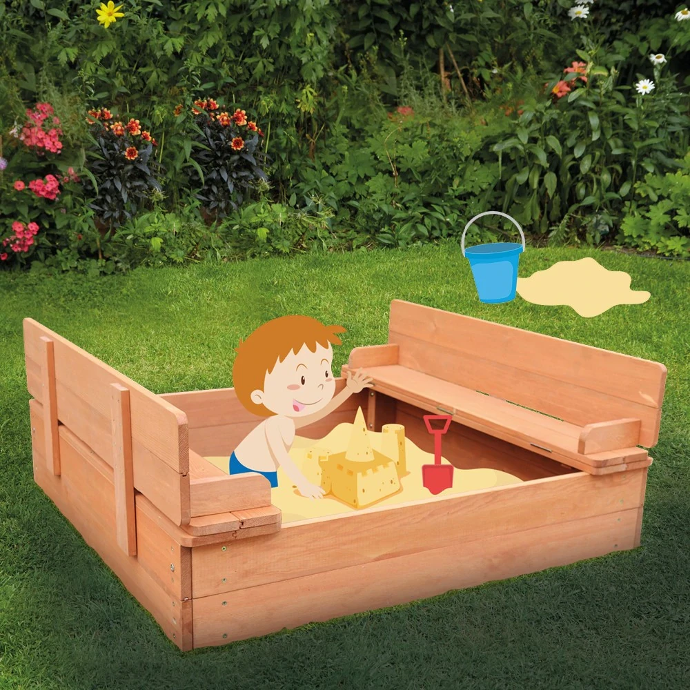 Liberty House Toys Kids Sand Pit With Seating and Cover ideal for those sunny warm days when you can’t make it to the beach.  Ideal for those sunny warm days when you can’t make it to the beach. Provide your children with their very own oasis in the comfort of your garden. A sandpit is a classic choice for outdoor play and is ideal for your little ones to play and learn.