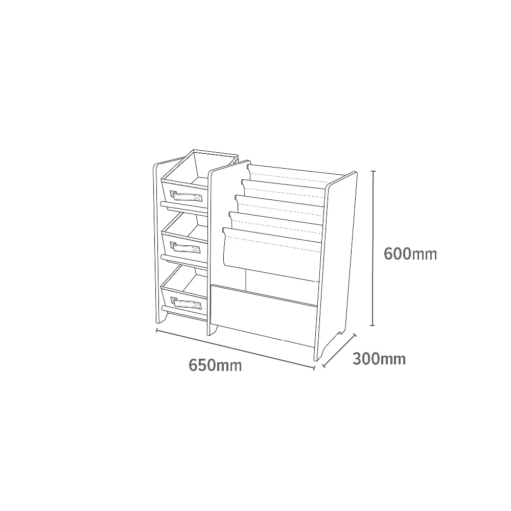 With friendly animal detailing this storage unit will be an attractive addition to any kids’ room. The compact but spacious unit features four deep canvas pockets, perfect for displaying their reading and drawing books. Underneath the safari book display is more storage, great for paper, pens, and small toys. The addition of three colourful removable fabric storage boxes means that toys can also be organised and moved to and from different locations with ease.