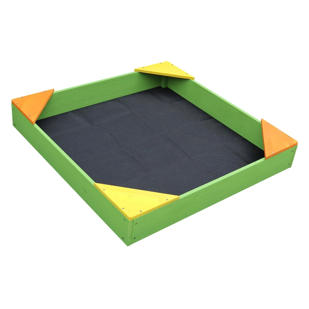 Also, our basic sandpit come pre-treated with a water-based preservative in green, orange, and yellow and is non-toxic. Equally important, the wood is FSC certified and is sourced from socially and environmentally responsible forests. It has also been heat-treated to protect against harsh weather.