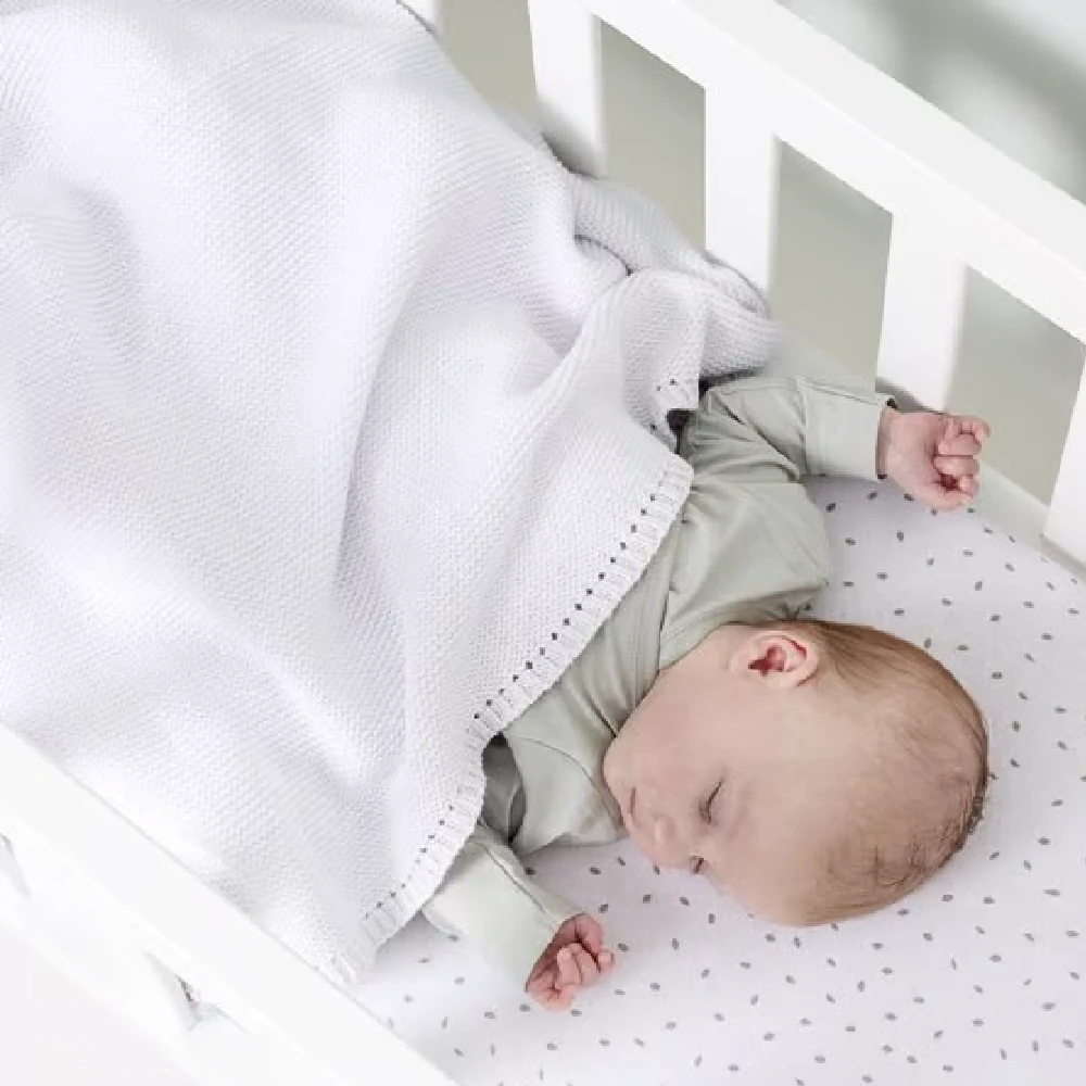 Little Green Sheep White Organic Knitted Cellular Baby Blanket