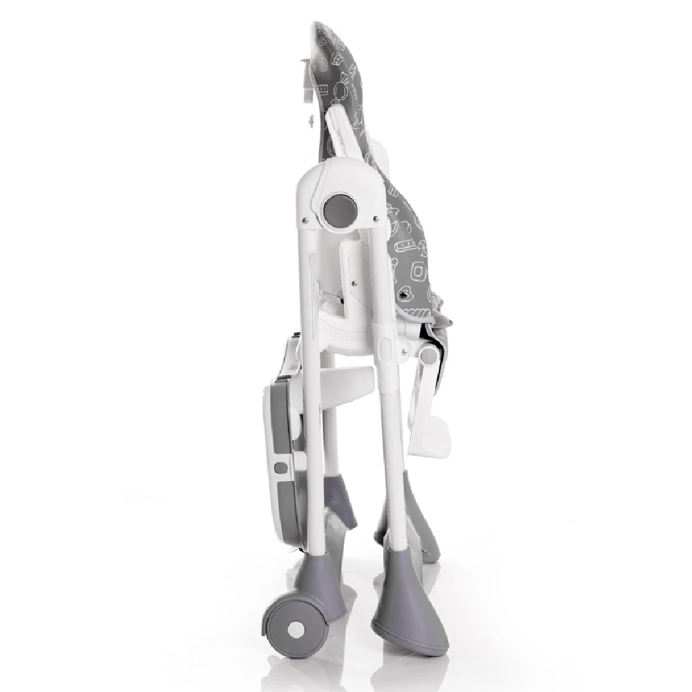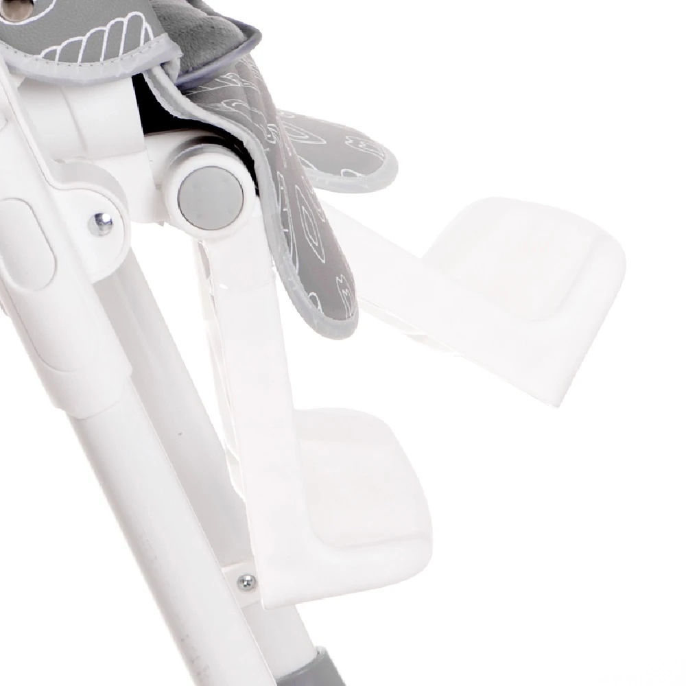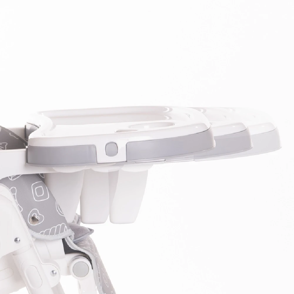 Lorelli CAMPANELLA Highchair Yellow has a sleek white frame with an additional soft body cushion insert. There are 2 trays, and the top tray can be removed. The two-part removable tray conveniently detaches and clips on the back of the highchair. It can be moved into 3 different positions and has a bottle/cup socket.