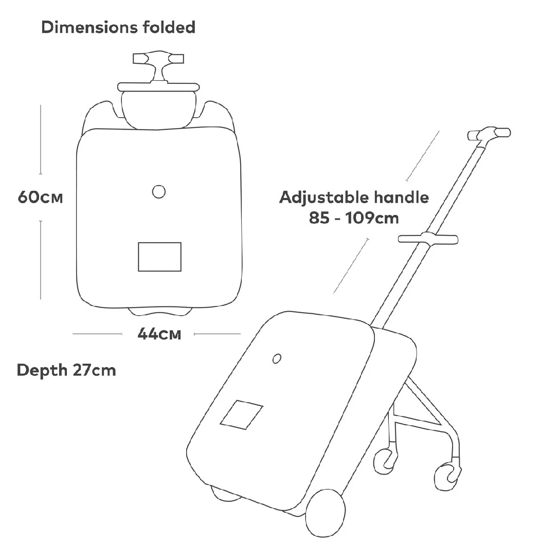 The ride on folds down to become a luggage approved case. Allowing you to take the Eazy on board the plane with you. A roomy 22-litre storage capacity means you can pack everything you need to keep your toddler entertained on the flight. Stroller for holiday adventures.