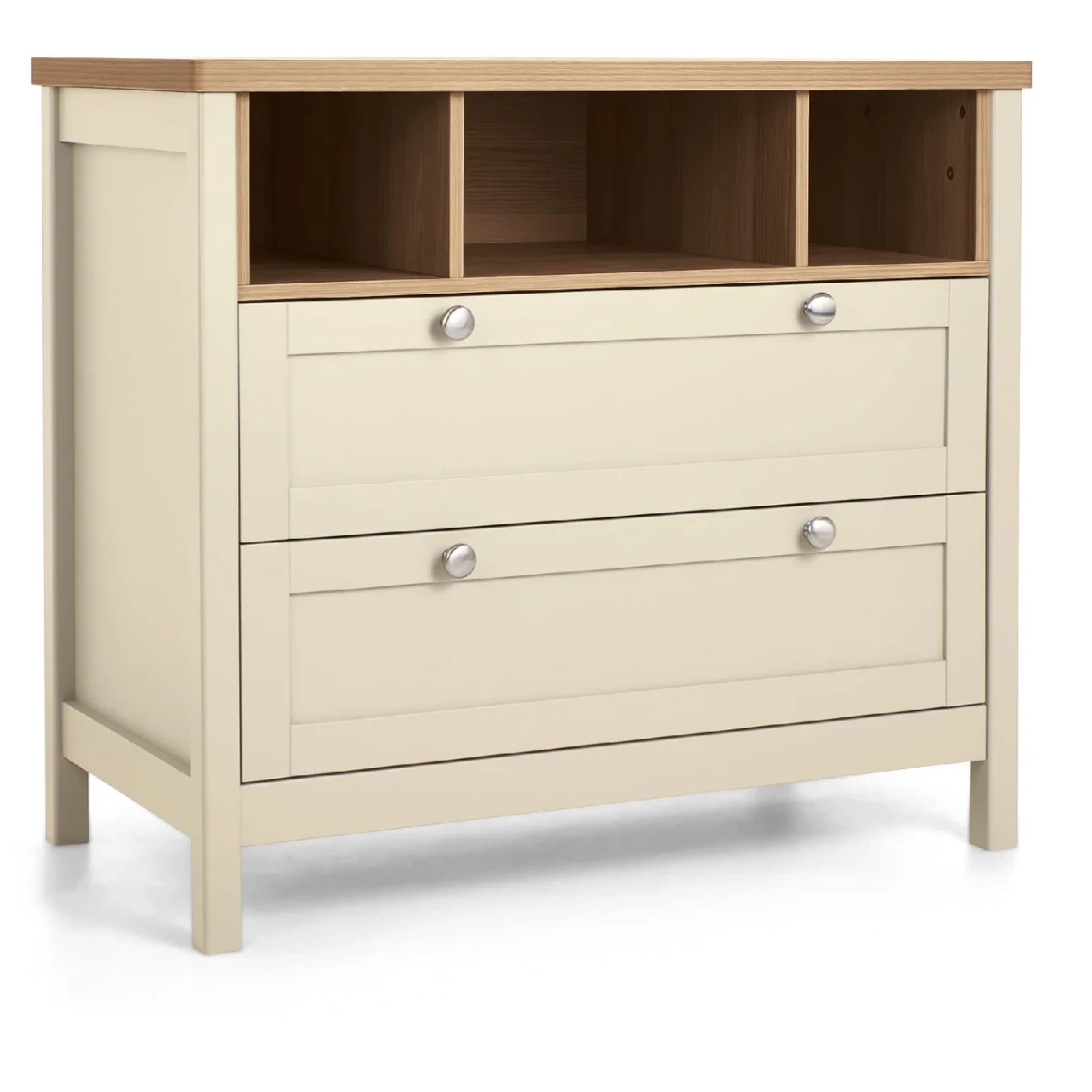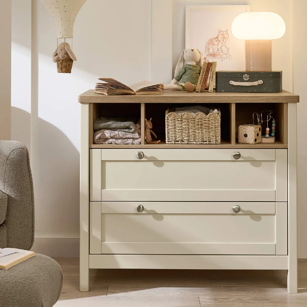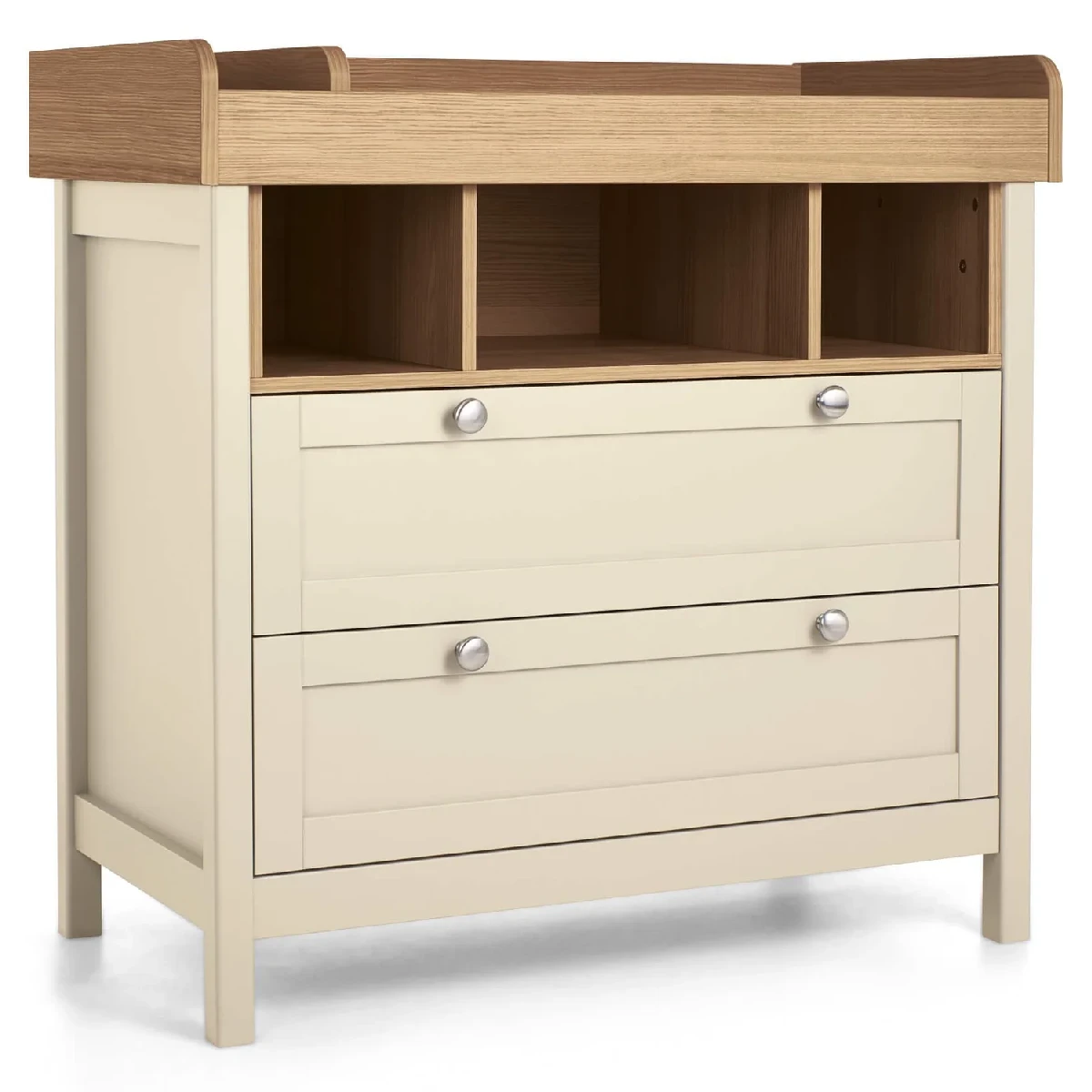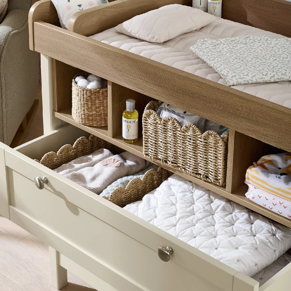 This dresser changer makes changing and dressing your little one easy. It’s got a removable top – so you won’t need to upgrade your furniture when your little one has a growth spurt. And thanks to the drawers and open box-style storage space, there’ll be plenty of room for all of your child’s toys and clean outfits – whatever their age. The handy soft close drawers also mean you won’t wake baby during naptime.