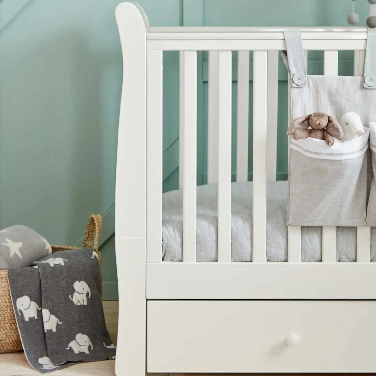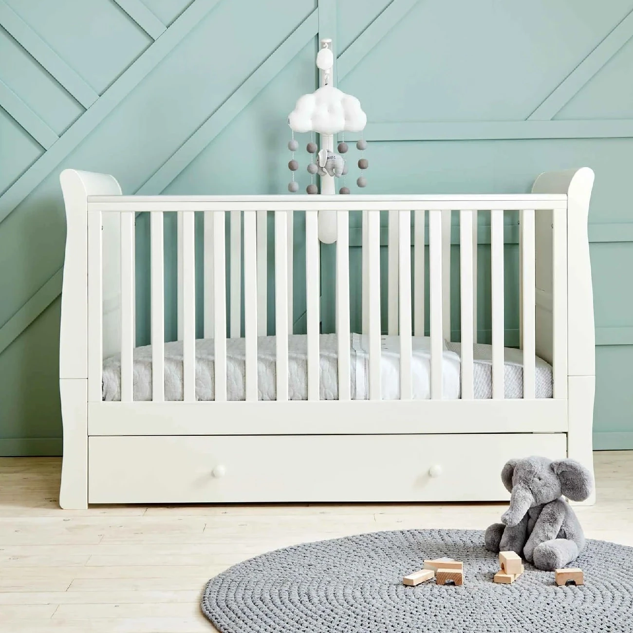 The underbed storage is ideal for keeping your little one’s bedroom organised, whilst the 2 teething rails soothes and protect gums, meaning there’s no need to worry about baby’s growing teeth damaging the edge of your cot.