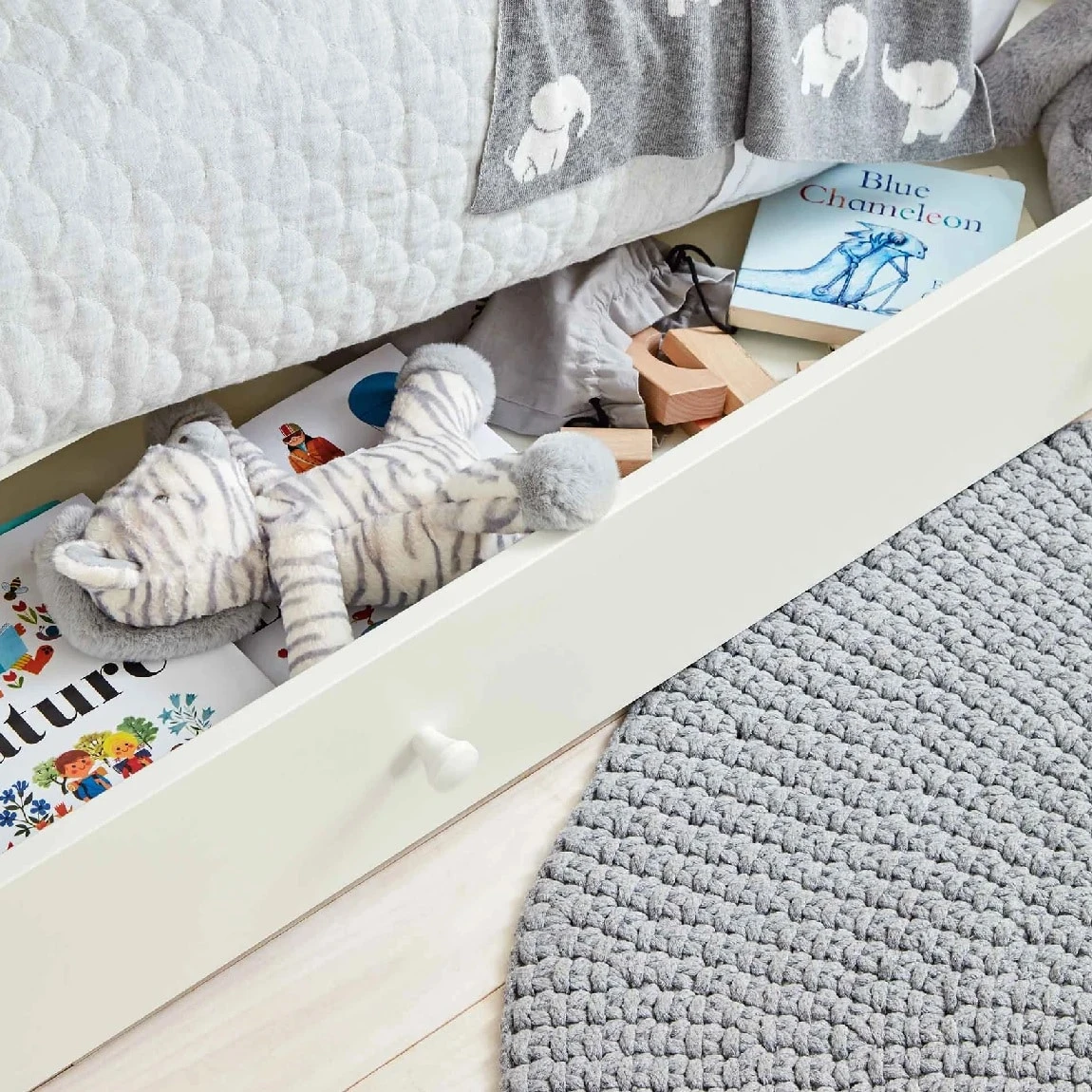 - Keep baby’s room organised with under-bed storage