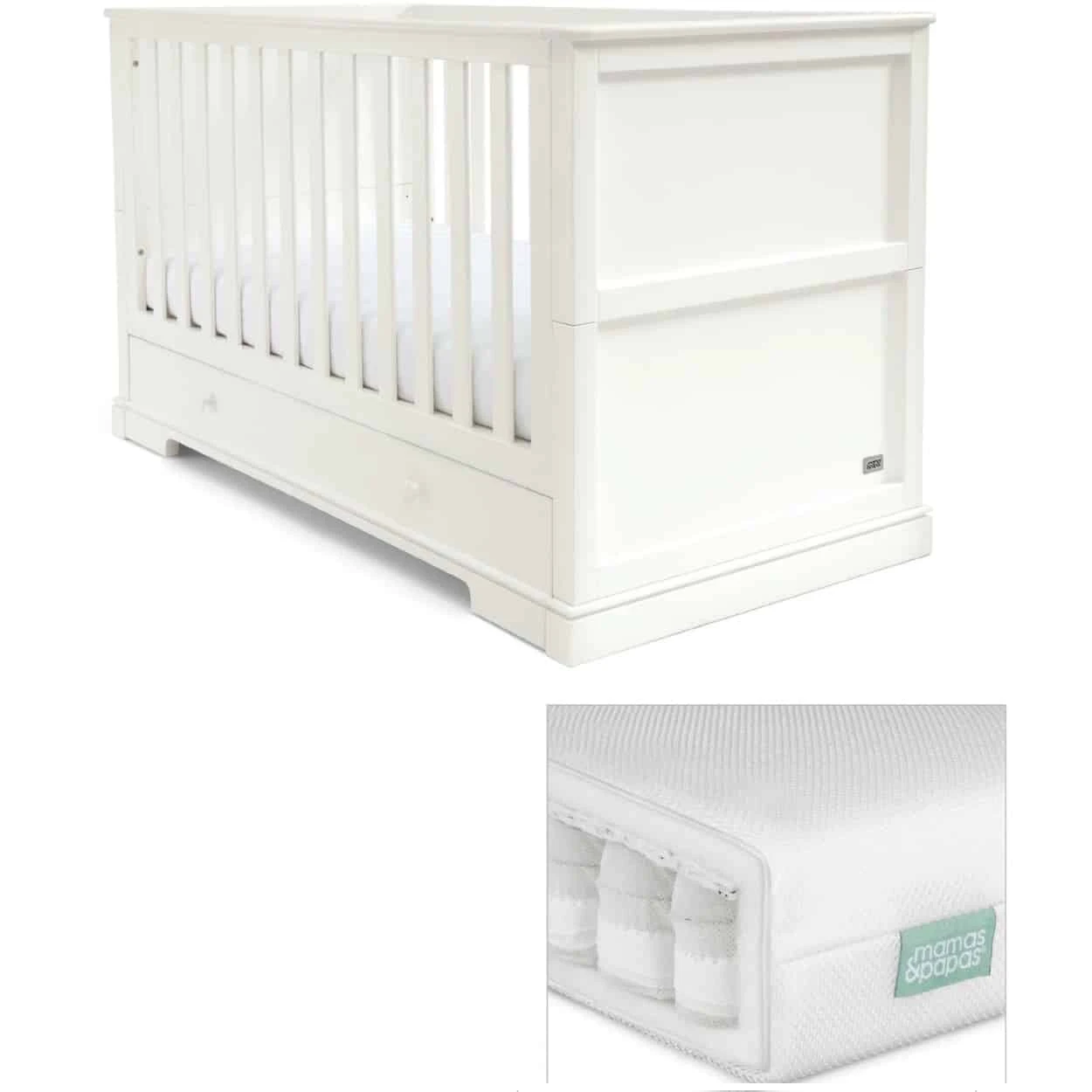 Mamas & Papas Oxford White Cot Bed With Premium Pocket Spring Mattress