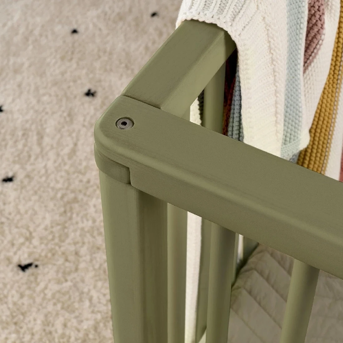 Mamas & Papas Solo Cot Bed and Mattress – Moss Green gives parents freedom to style their nursery their way. Furnishing a nursery shouldn’t always entail an entire furniture set. Which is why we designed Solo, a standalone cotbed.