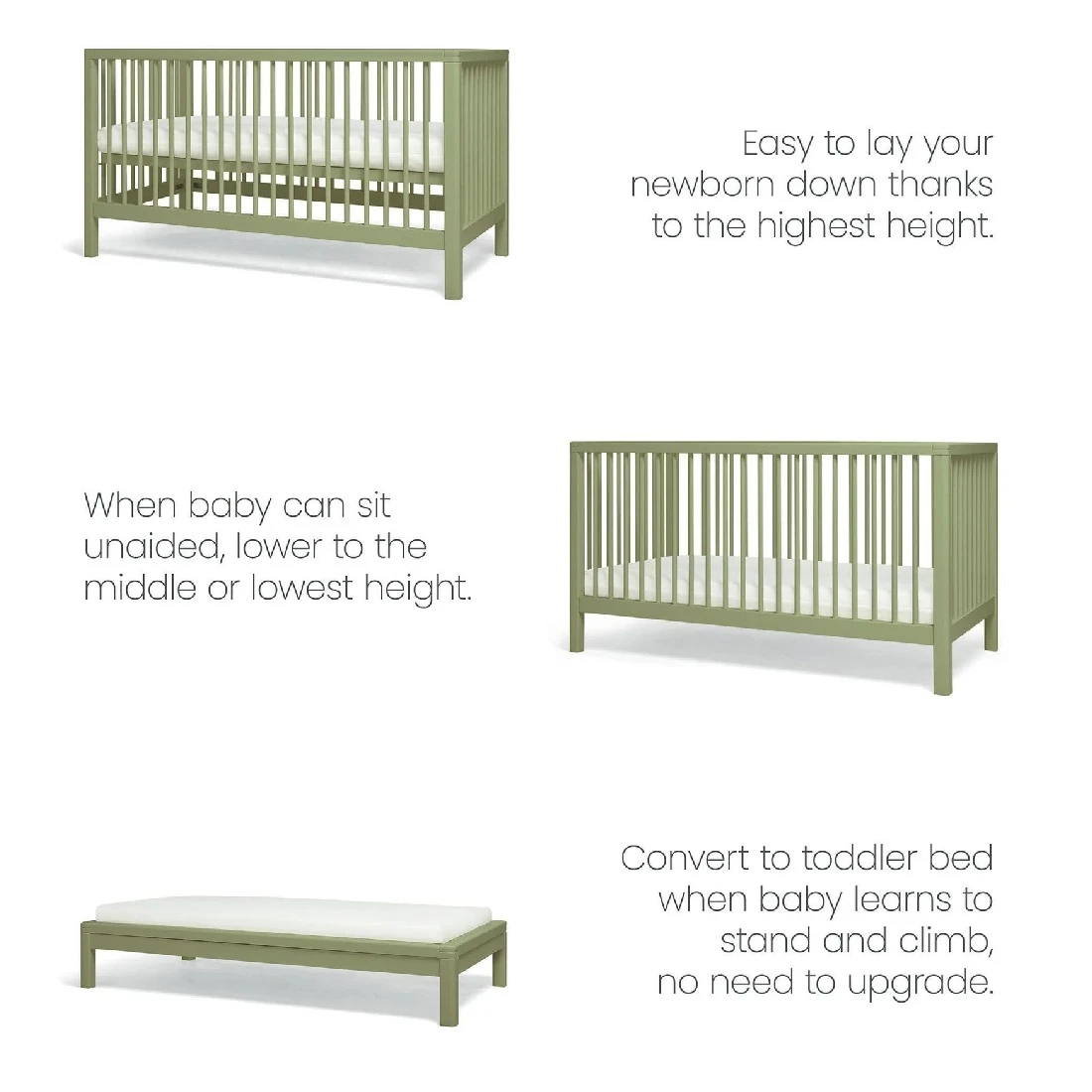 - Converts easily into a toddler bed to last up to around age 4 years