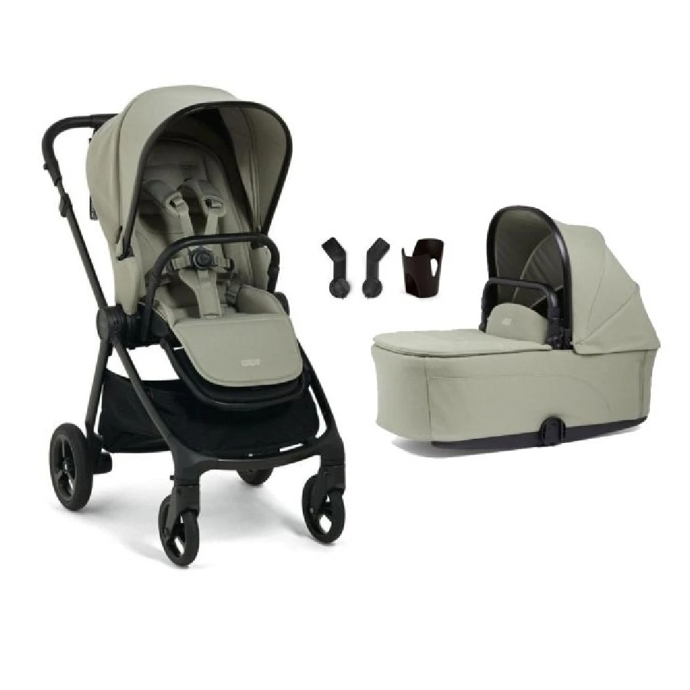 Mamas & Papas Vardo Sage Starter Kit is a lightweight pushchair with multi-terrain capability. This convenient bundle includes Vardo Pushchair, Vardo Carrycot, Universal Cup Holder & Vardo Car Seat Adaptors for Cybex/Maxi-Cosi.