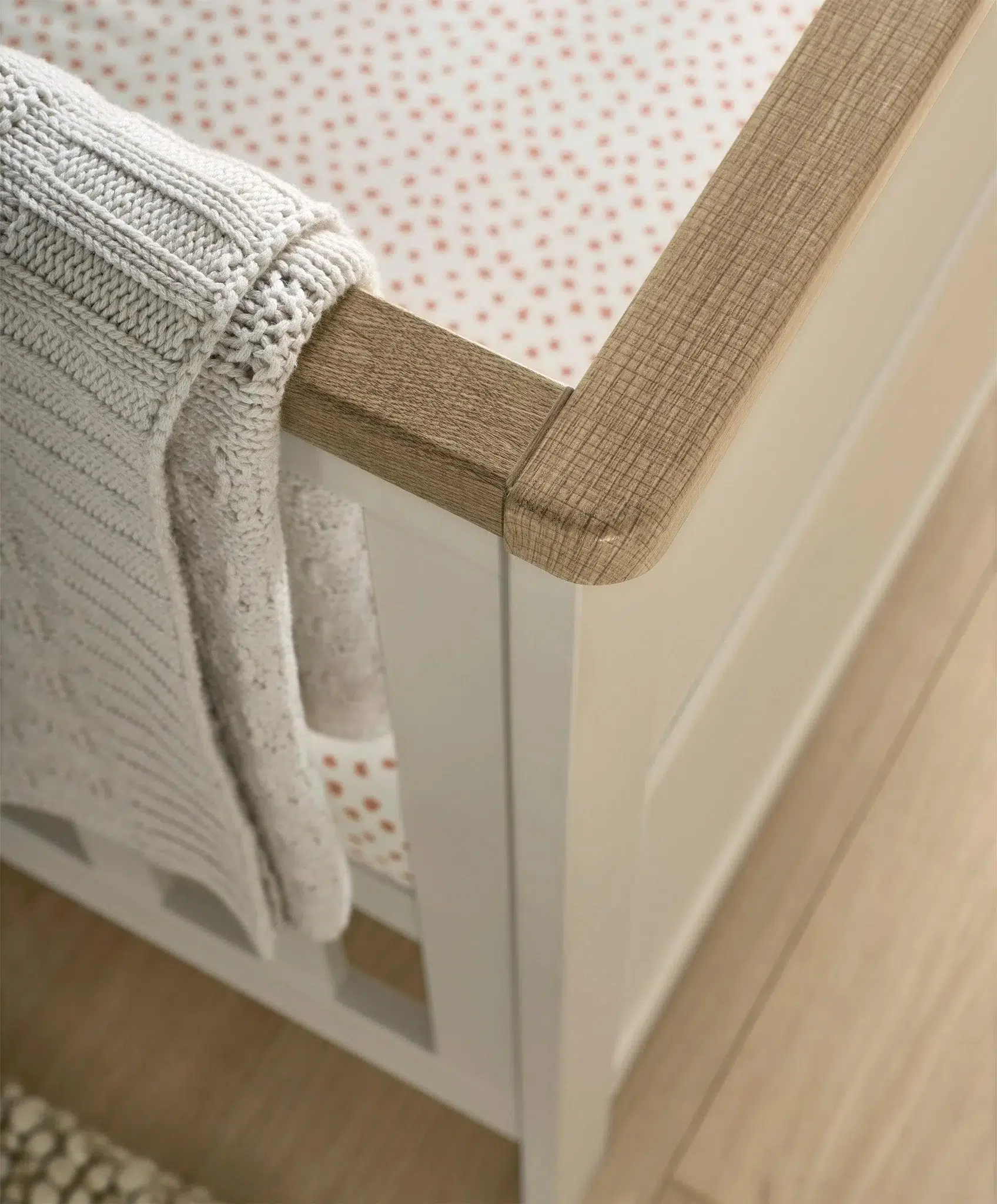Thanks to a baby cot bed that converts into a toddler bed and a removable changing top for your nursery dresser, our Wedmore 3-piece nursery furniture set will see baby from newborn into toddler years and beyond. And when it’s time for a nap, the 3 adjustable cot base heights ensure baby is safe as they grow bigger and become more mobile.