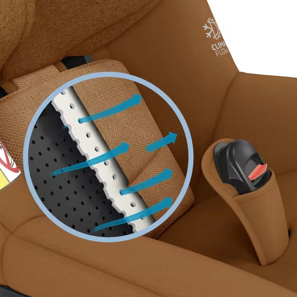 The Maxi-Cosi Mica Pro Eco i-Size – Authentic Cognac is our benchmark in safety. Not only is it built to the highest i-Size safety standards, but it combines best-in-class comfort. With planet-friendly innovation to create the first sustainable car seat of its kind. This car seat from birth uses Eco Care, which means it has 100% recycled fabrics.