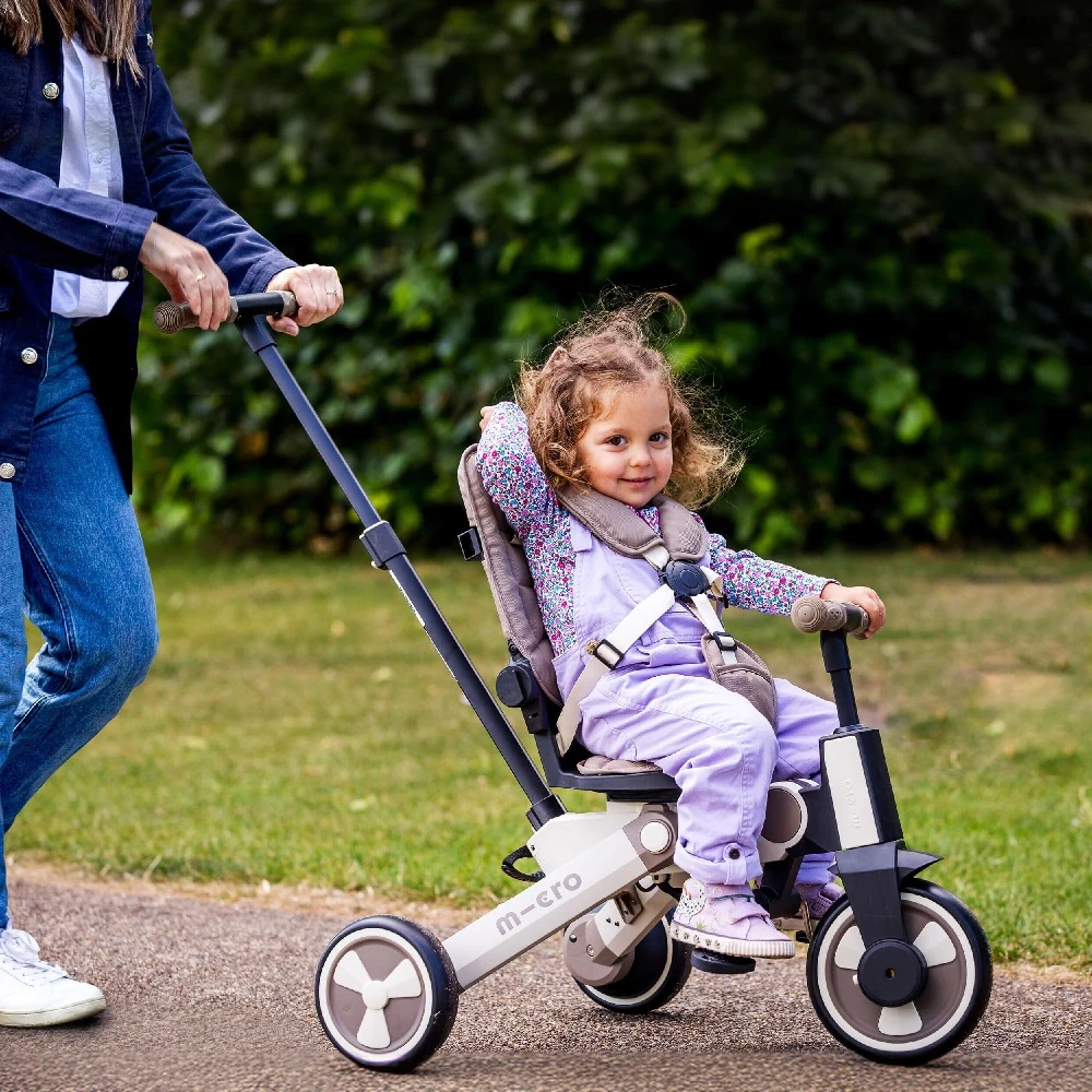 The Micro Flexi Trike Latte meets the needs of everyone in the family: It is a quick, agile travel solution for parents, a fun and exciting mode of travel for riders as young as 6 months, and ideal for siblings who also want their turn.