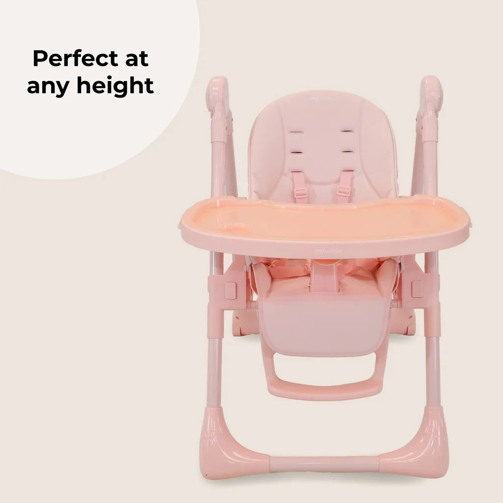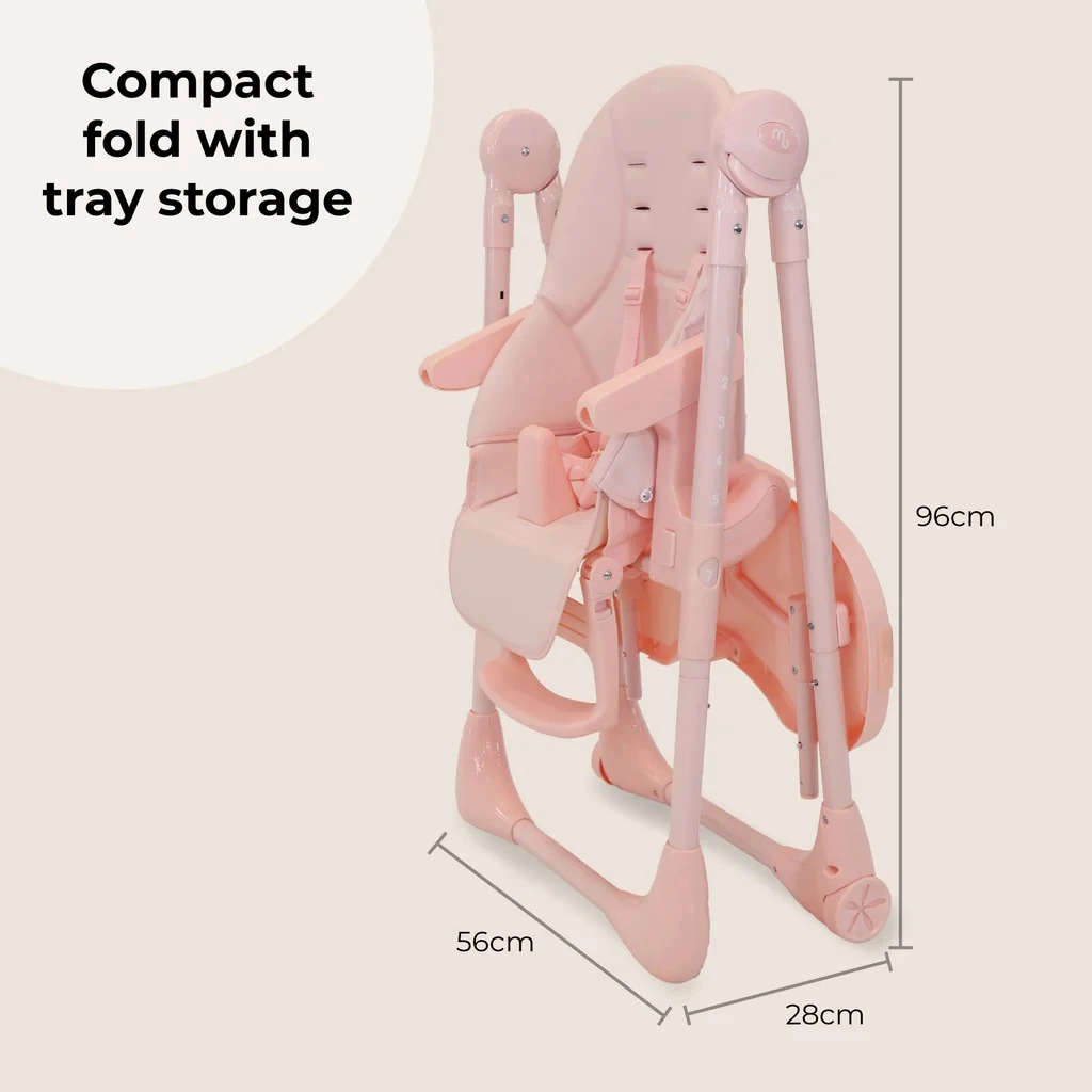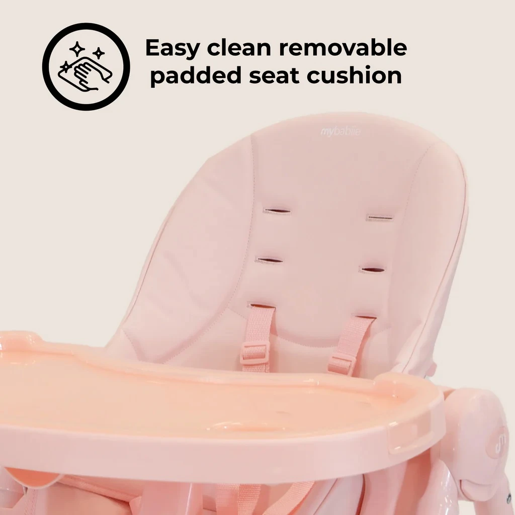Transform your weaning journey into one of luxury with the My Babiie Luxe Highchair – Pink. Featuring 7 height adjustable positions, a lie-flat recline and revolutionary back wheels for ultimate manoeuvrability. Ultimate adjustability, comfort and function.