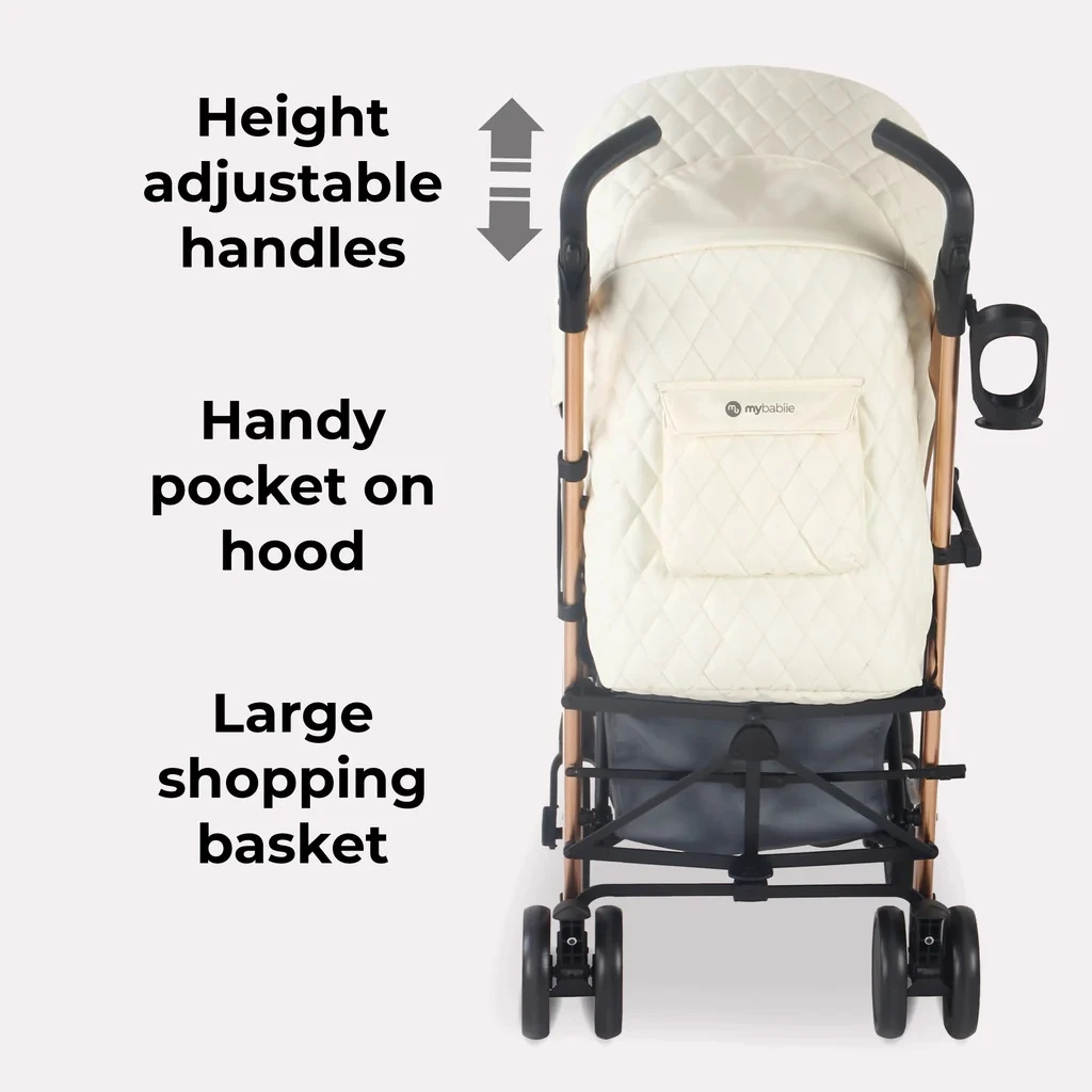 My Babiie Plus Stroller Quilted Champagne is tough enough to take everywhere with you and use everyday, the lightweight aluminium umbrella fold stroller is packed with features to make using it as comfortable for you and your little as possible.
