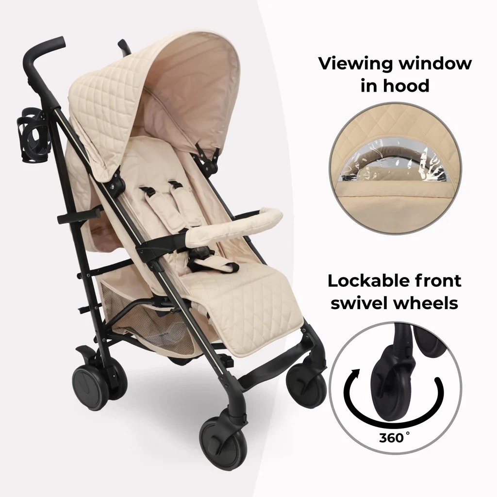 My Babiie Plus Stroller Quilted Sand is tough enough to take everywhere with you and use everyday, the lightweight aluminium umbrella fold stroller is packed with features to make using it as comfortable for you and your little as possible.