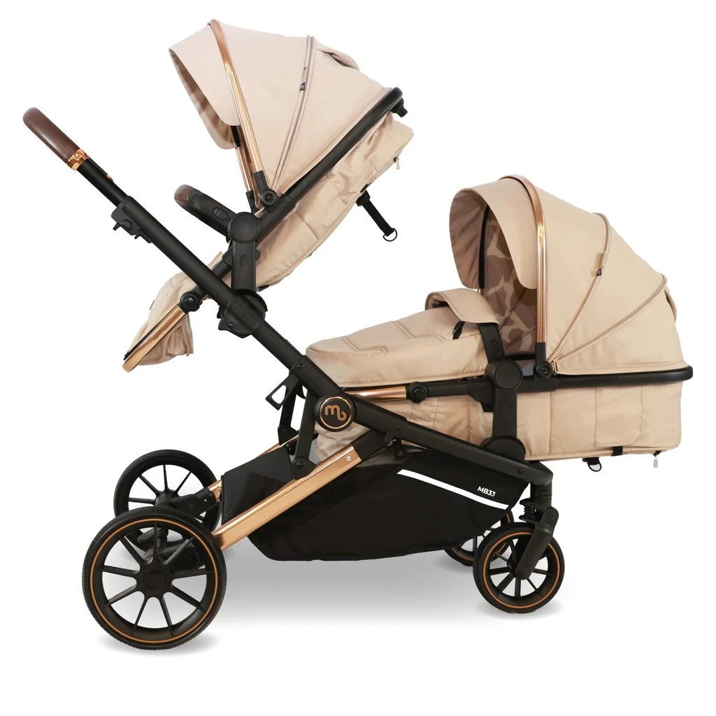 My Babiie Tandem Pushchair – Giraffe the sleek fabrics will have you and your little ones strolling in style and is the perfect, affordable solution for firstborns, siblings or twins.