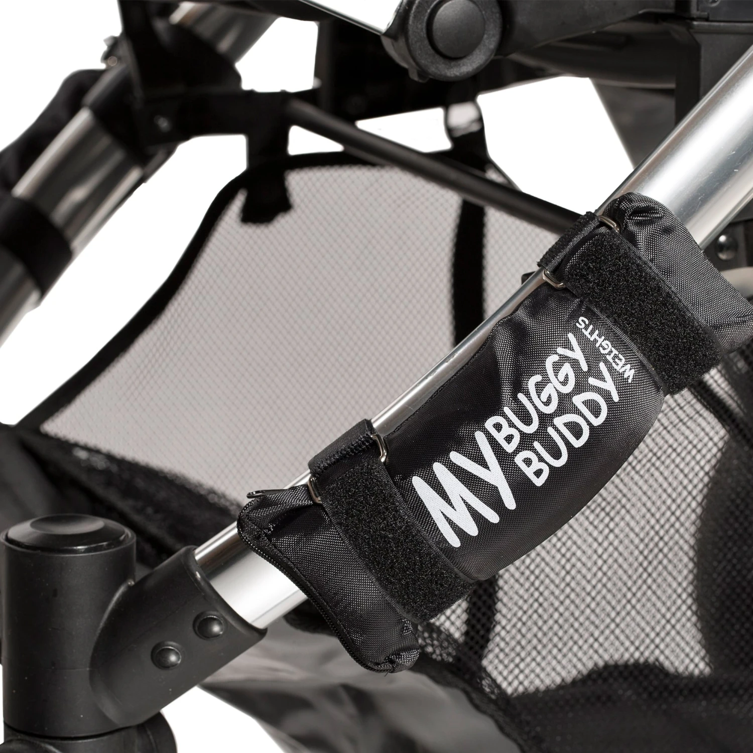 Trips out with babies and toddlers invariably mean carrying a lot of other baby products with you. These buggy weights are simple to fix to the buggy frame by velcro straps to counterbalance the load on the My Buggy Clips